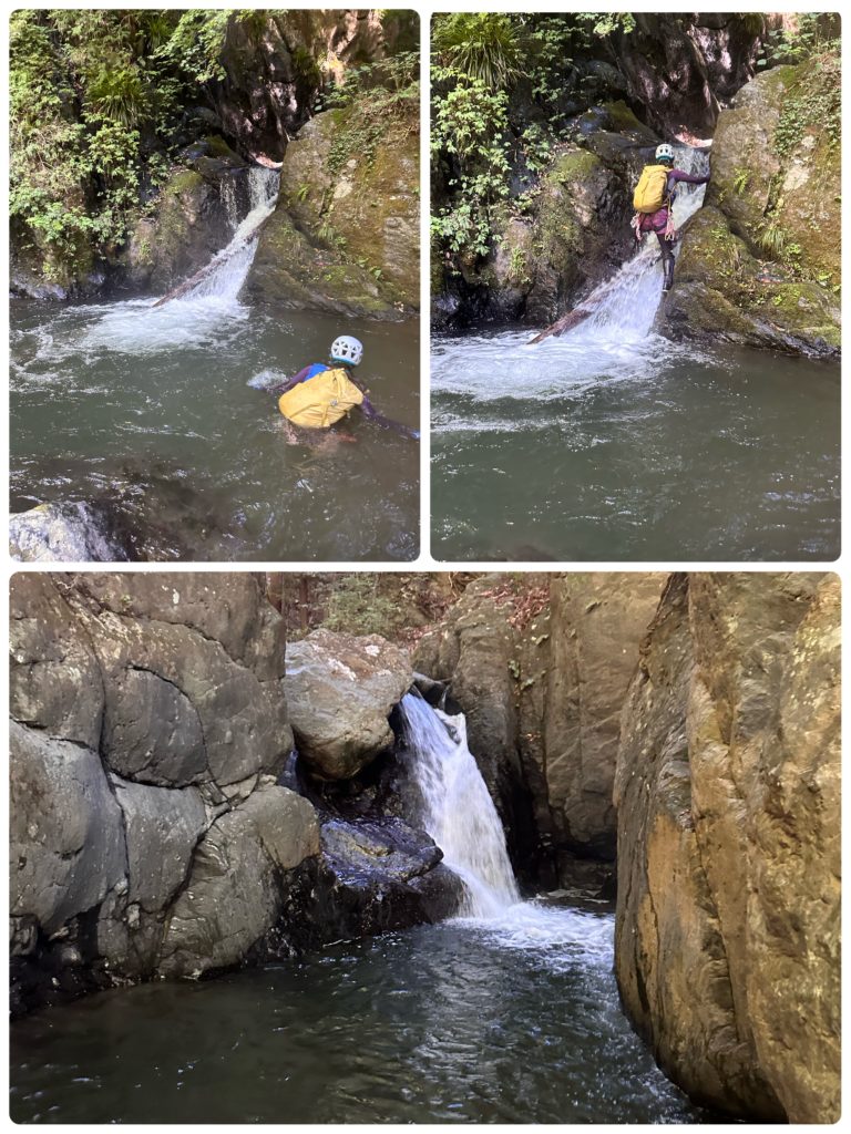 半円の滝の上は広く突っ張りが効きづらい感じ。トップのトミーがドボンしまくりビビる私。左から簡単に巻けそうだけど、みかちゃんが『ここが最後のアトラクションですよ!』と睨まれ、頑張ることに。