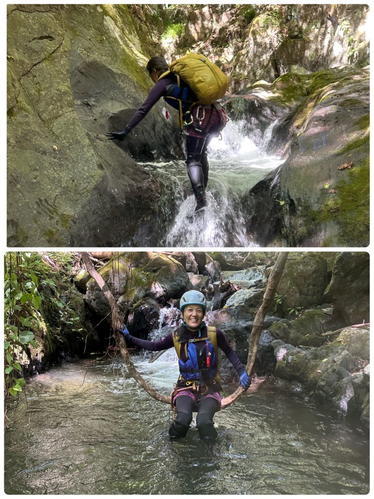 みかちゃんは滑りそうな右に軸を置き、左足は少し高めにおいて難なく通過。私はロープ出してもらって恐る恐る通過。その後2日間、太もも内側が筋肉痛になったのは言うまでもない