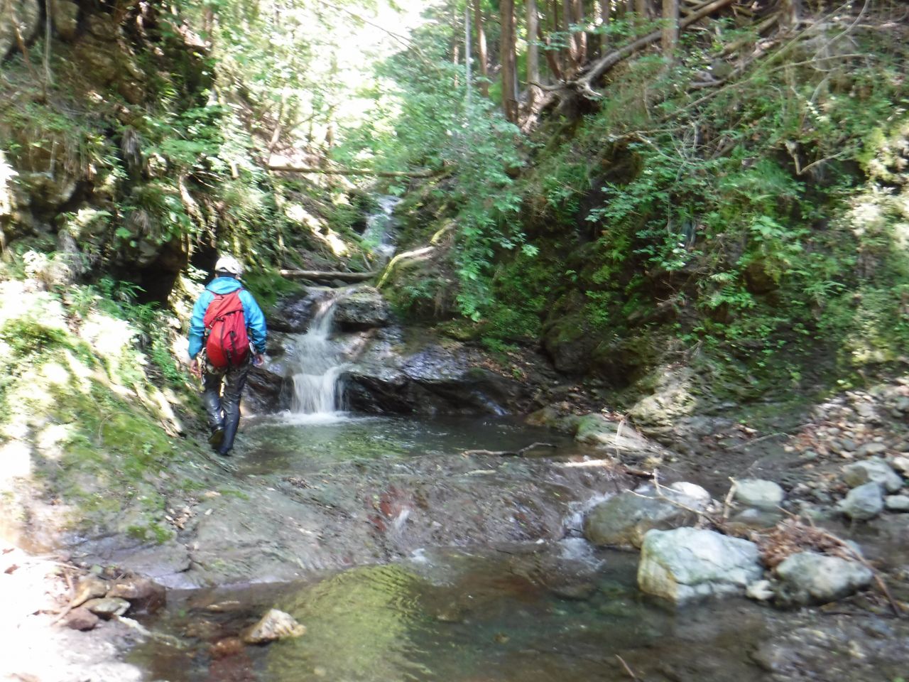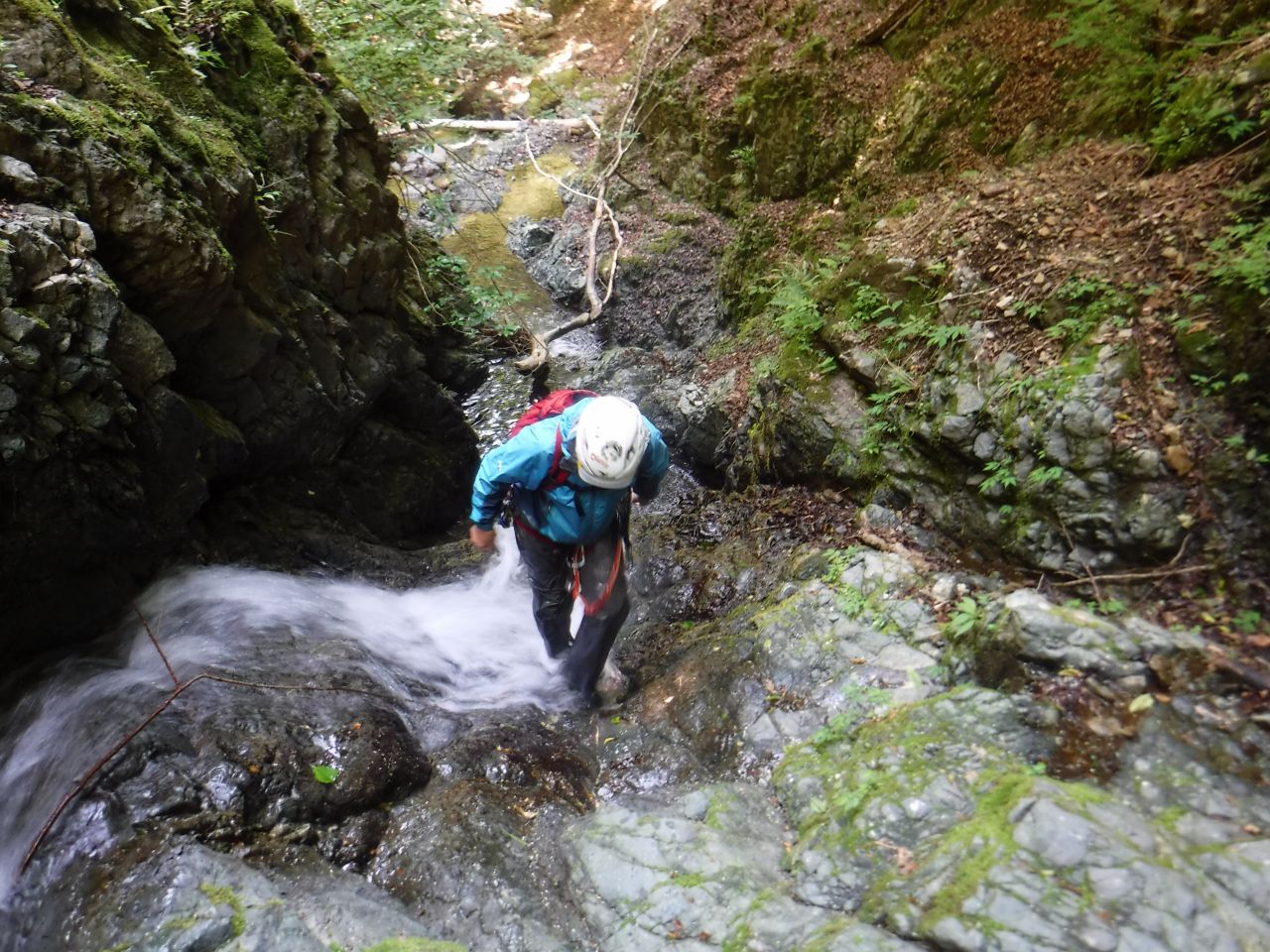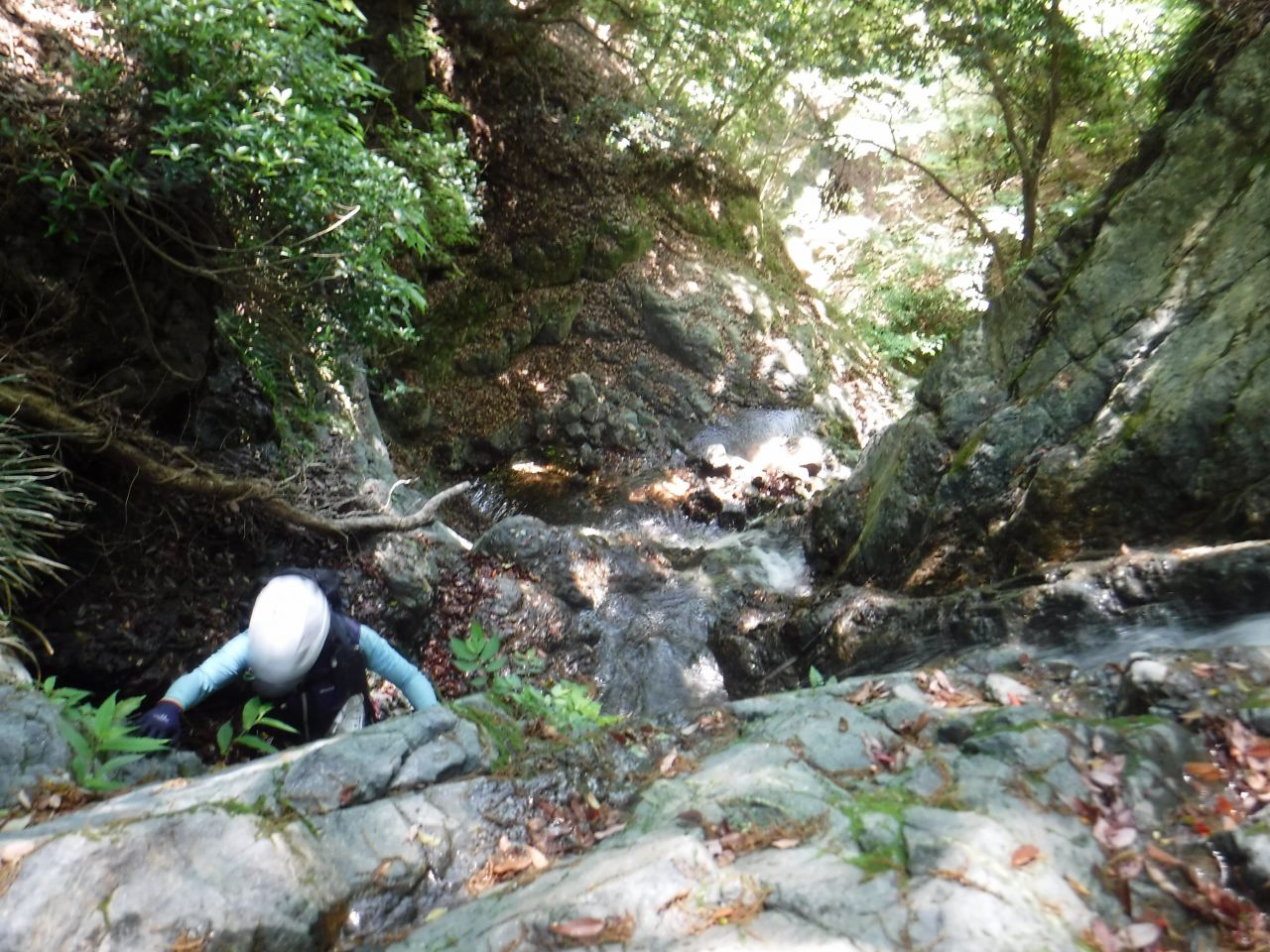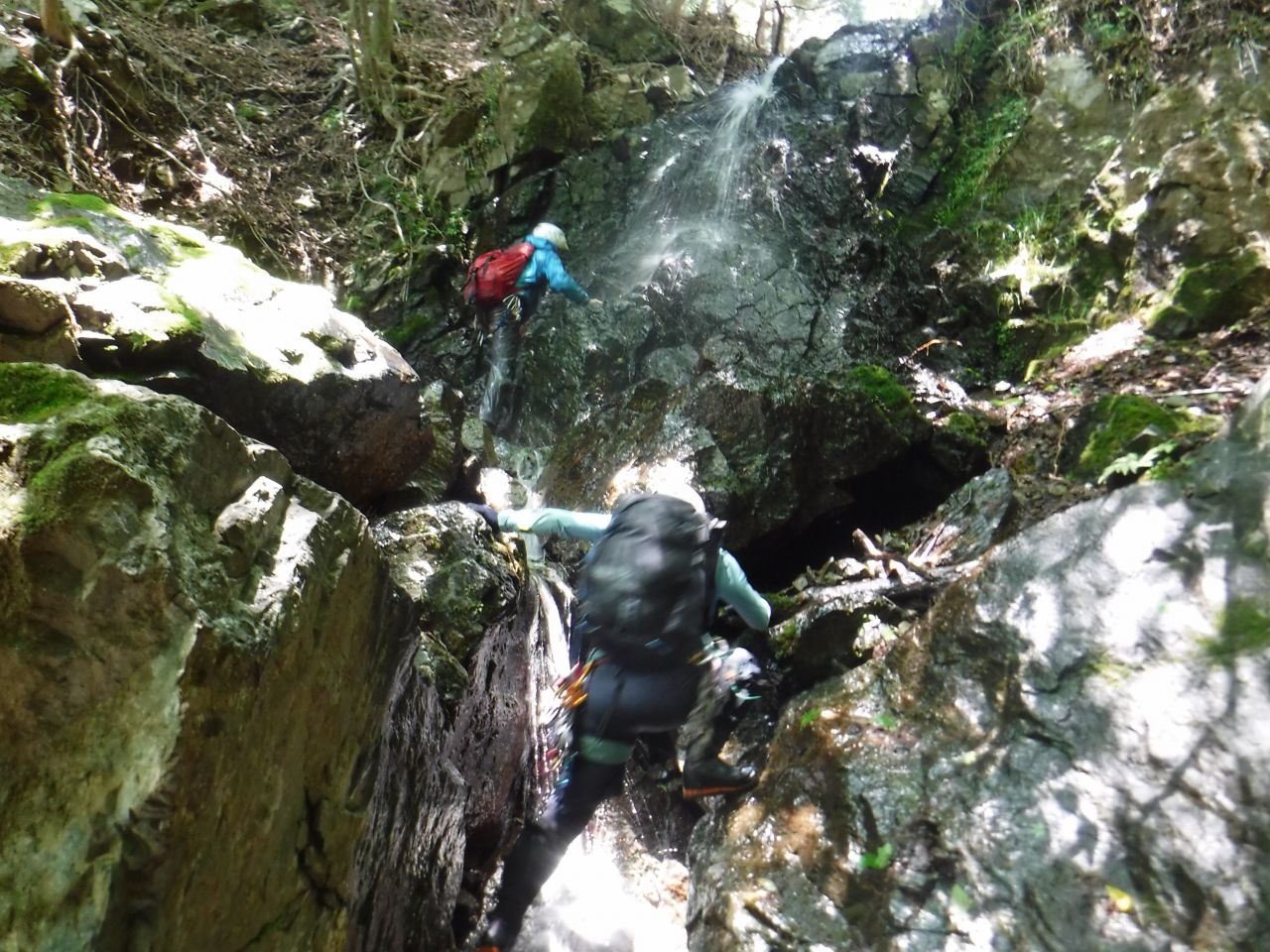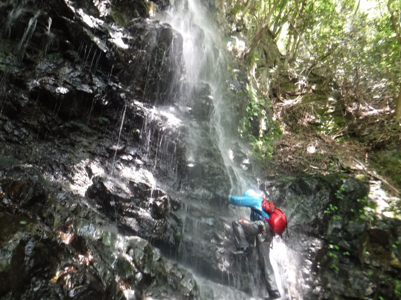 途中、間違ってゴルジュに降りるが先の滝が登れないのでまた登り返す。