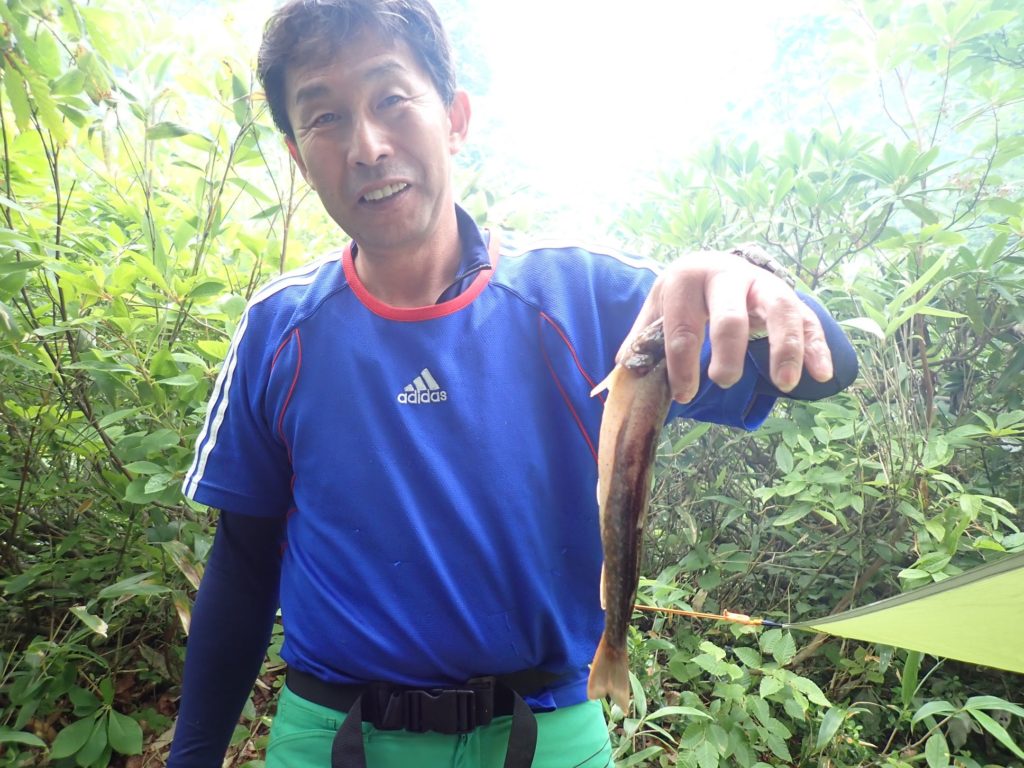 釣果は伊三雄さんと加藤が一匹ずつで二匹。このあたりのイワナはスレているのがいるようで、僕は連続三回エサだけ獲られてしまい二匹目を諦めました。