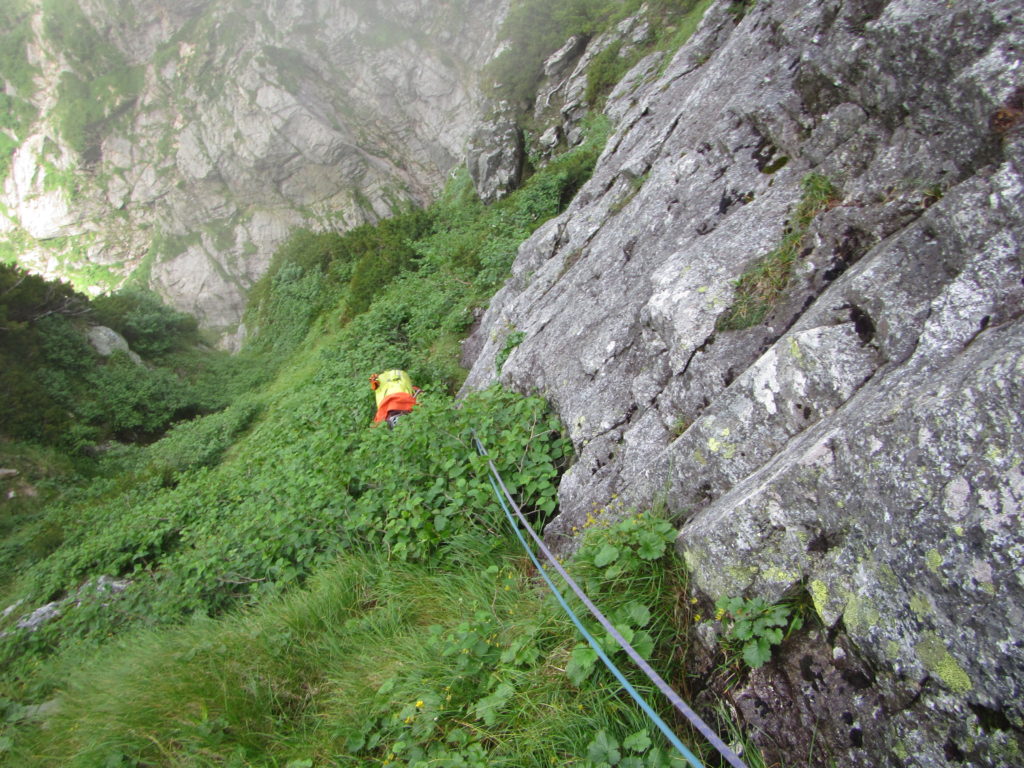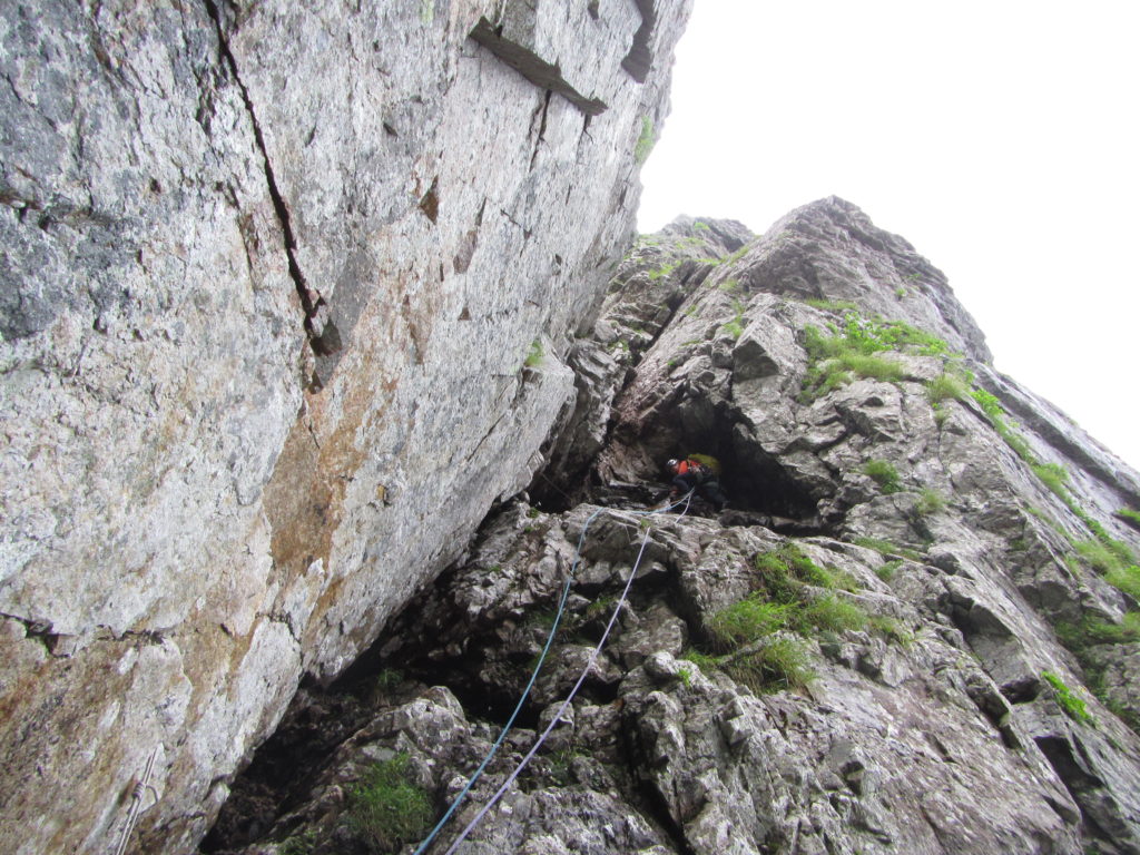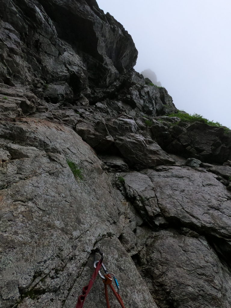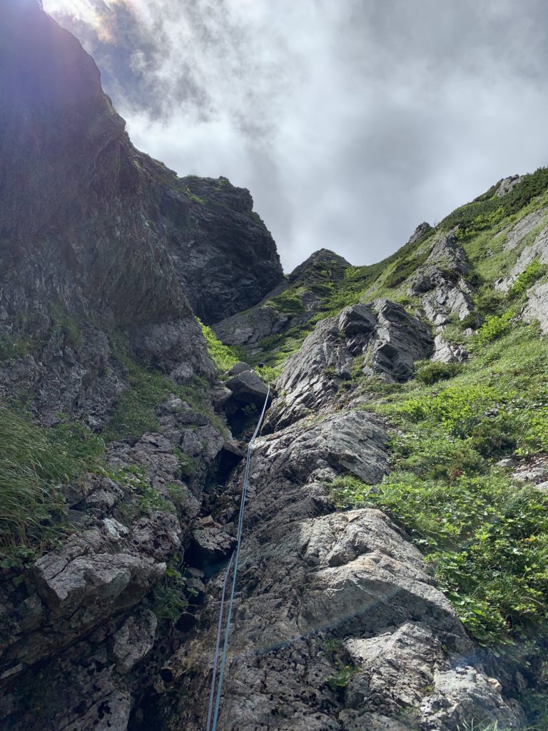 一部草付フェースに出たけどランニング取れずルンゼに戻った