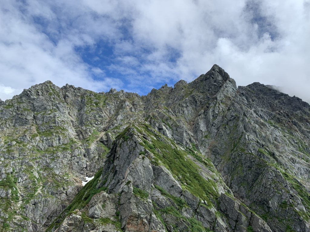 ホッとするのも束の間,コルBから続く剣尾根上半部が威圧感を放っていた