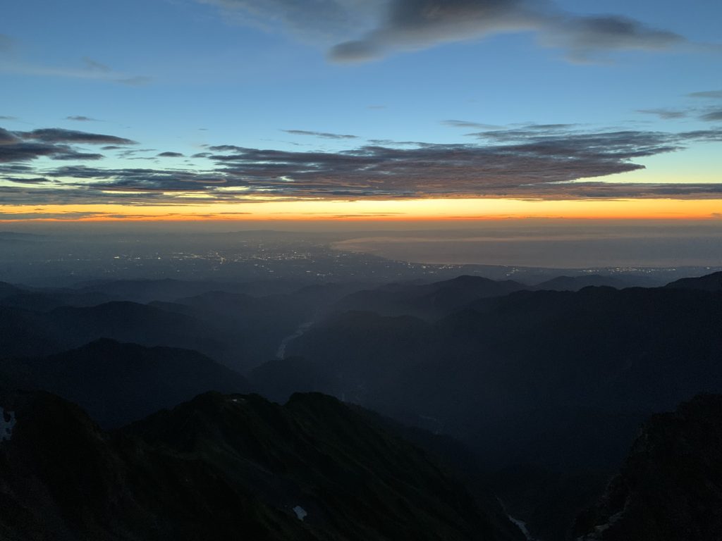 池ノ谷乗越までの稜線から見た富山の夜景と流れ星に癒されながら