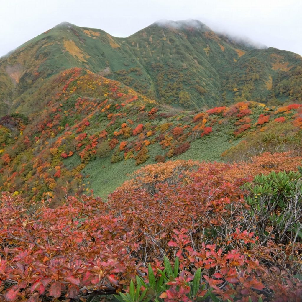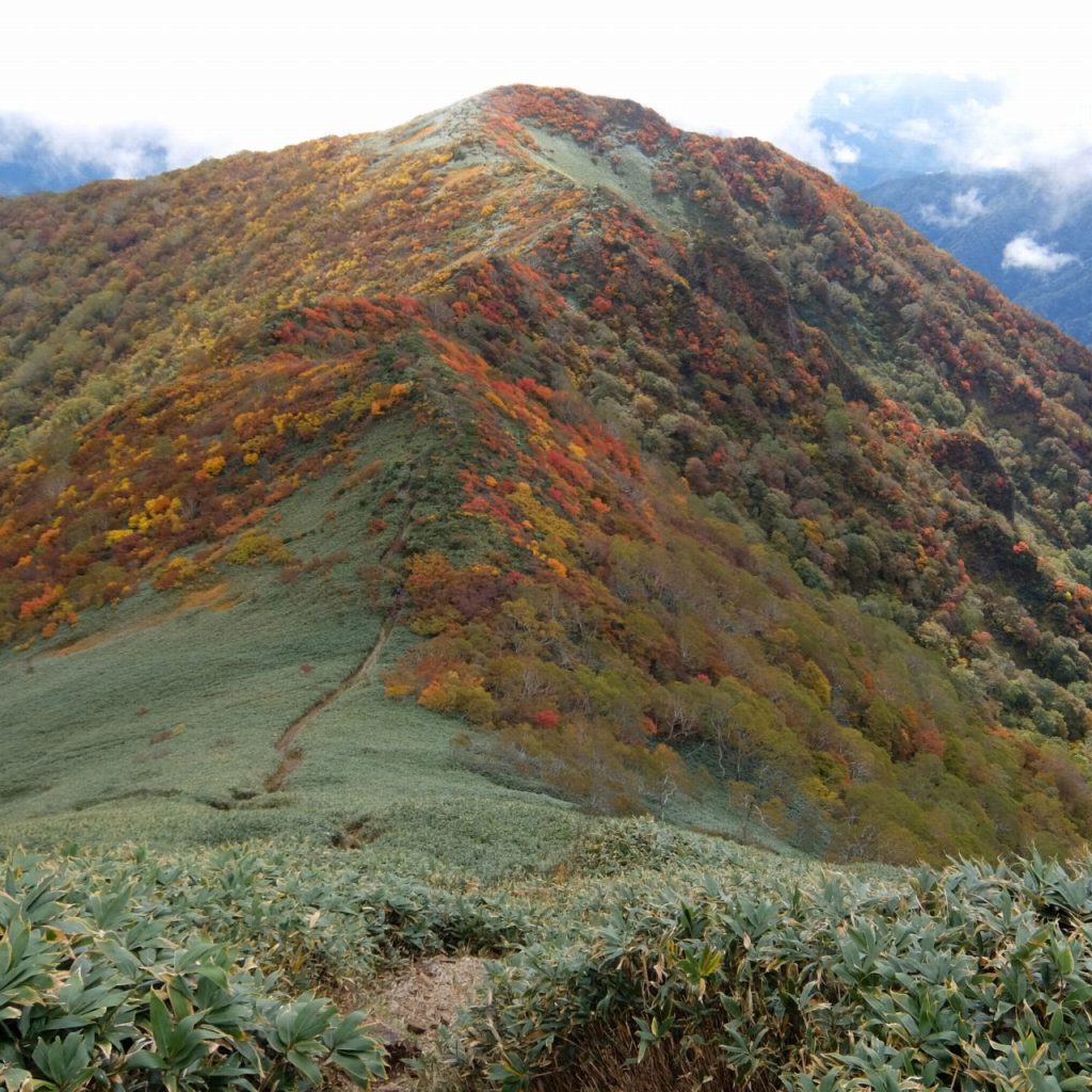 白毛門山頂付近から笠ヶ岳にかけての稜線は紅葉が見事!