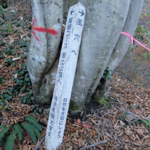 尾根コース、負欠岩コースの分岐。尾根コース(右)を行く。