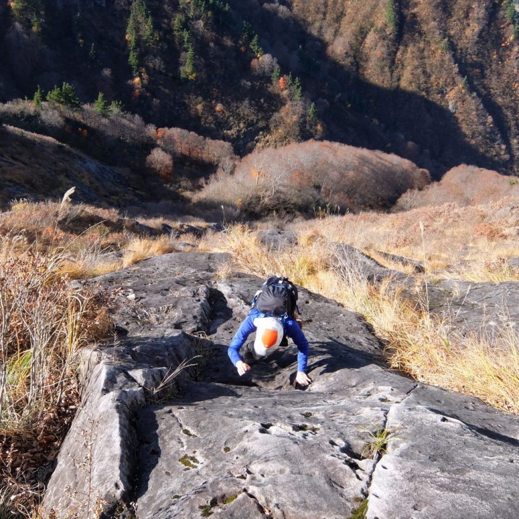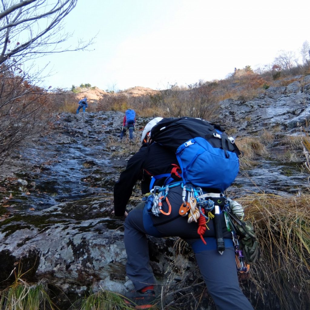 どこでも登れそうだが、あんまり変な所行くと難しくなる。