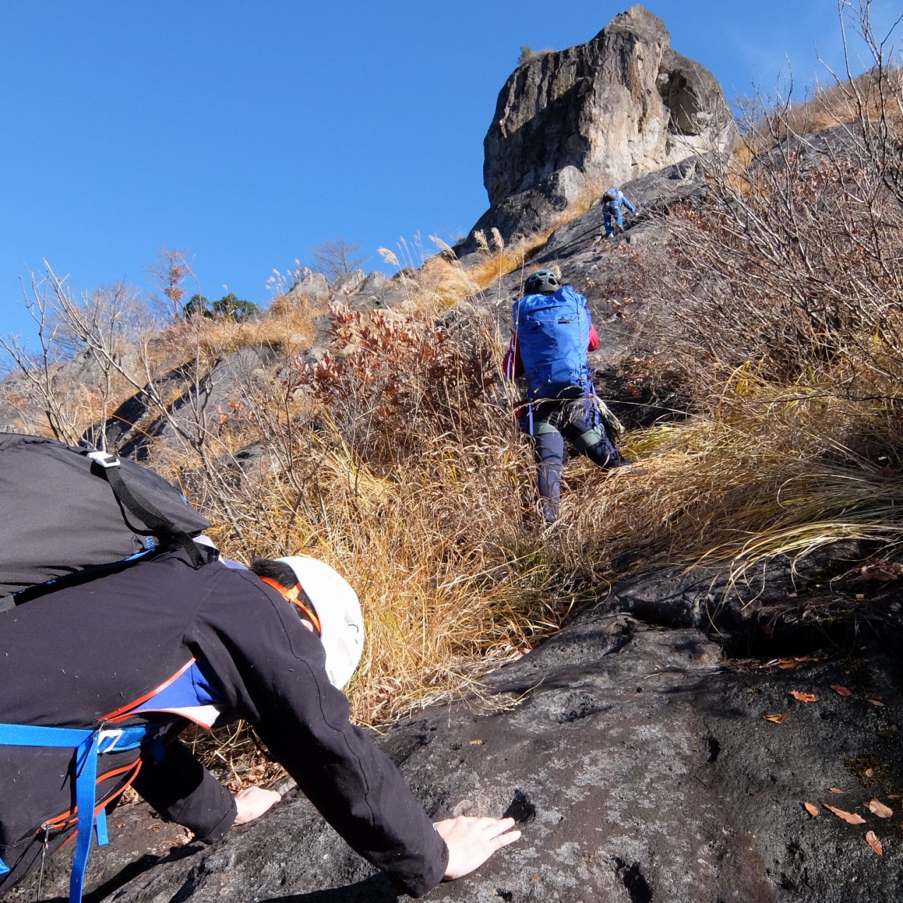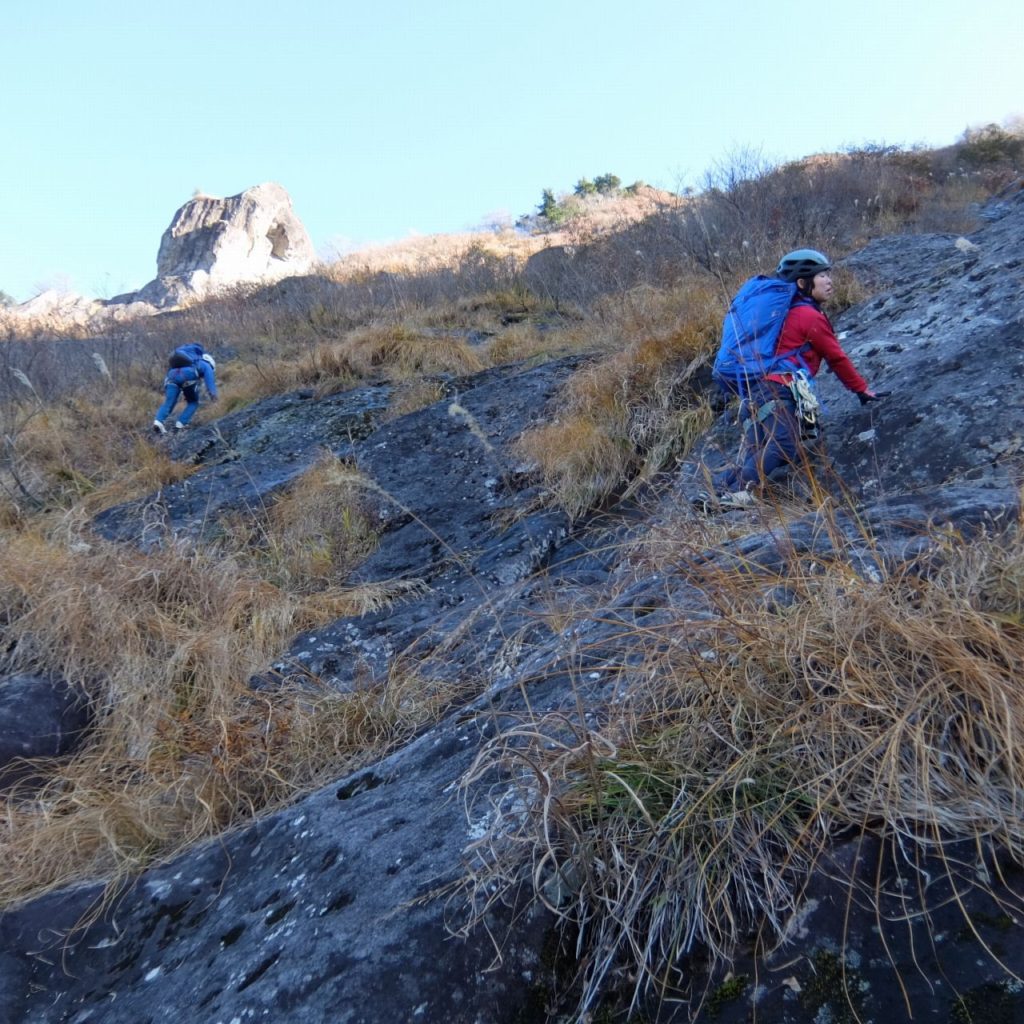 負欠岩を登る。