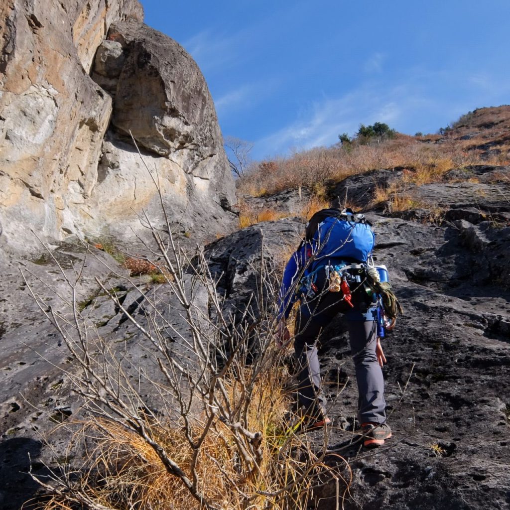 岩の側面は難しそうなルート有り。