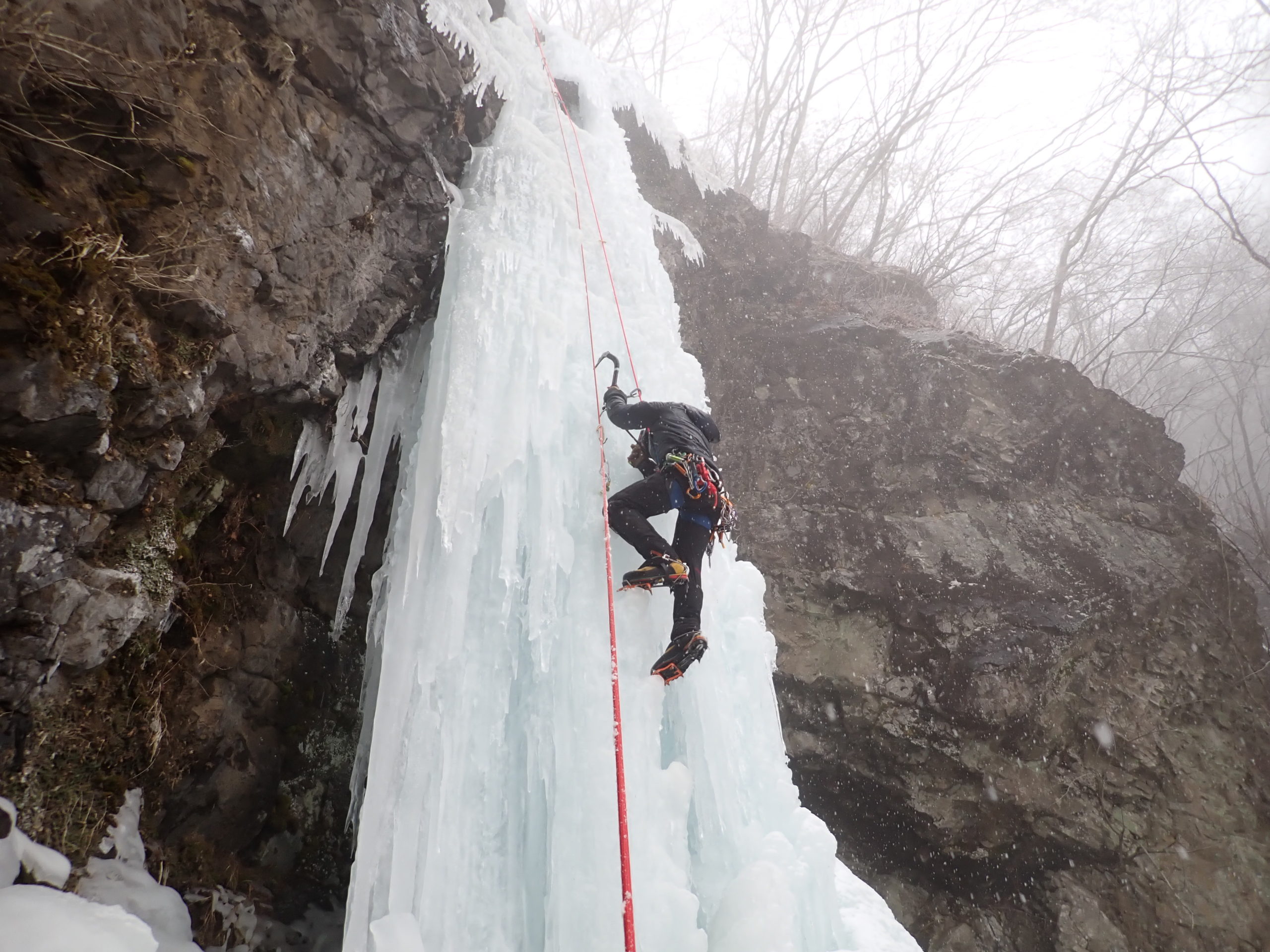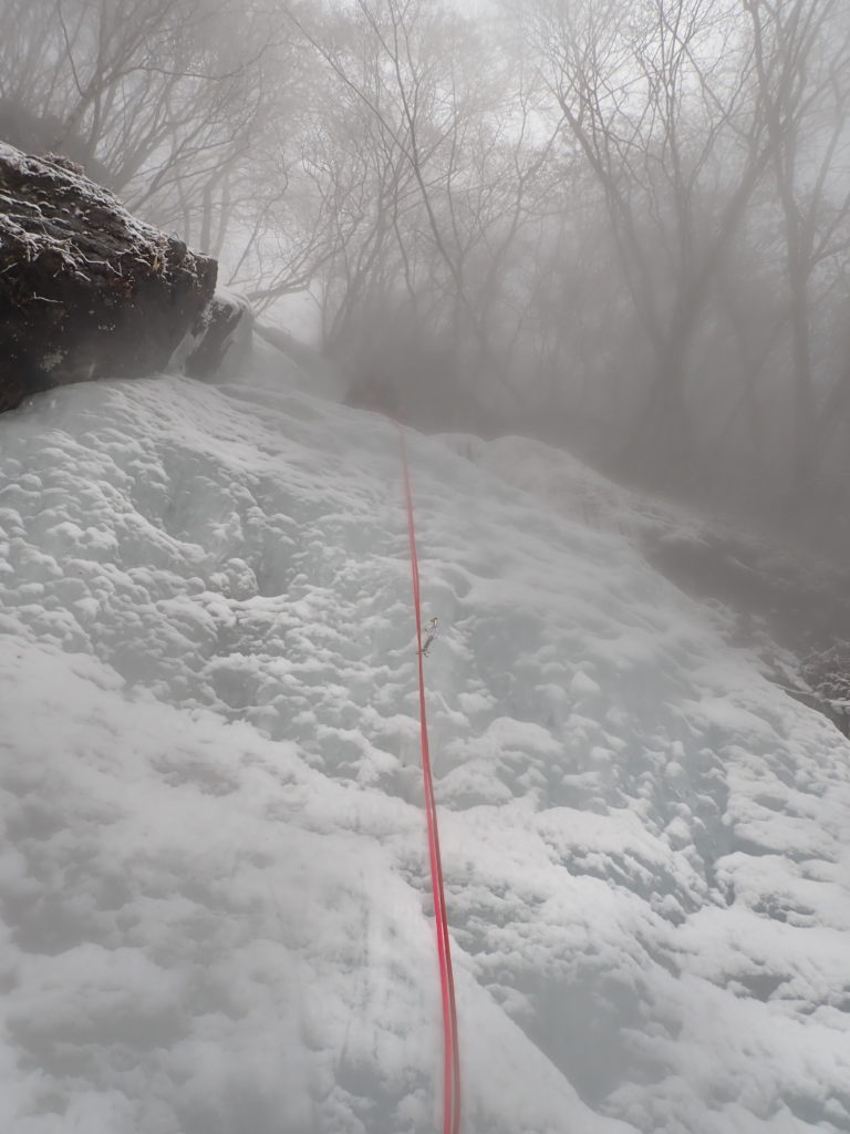 1P目、久米さんリード。出だしが立ってて5+ぐらい?気温が下がったので氷質は安定してた。
