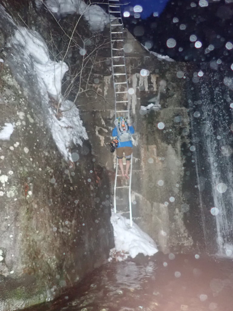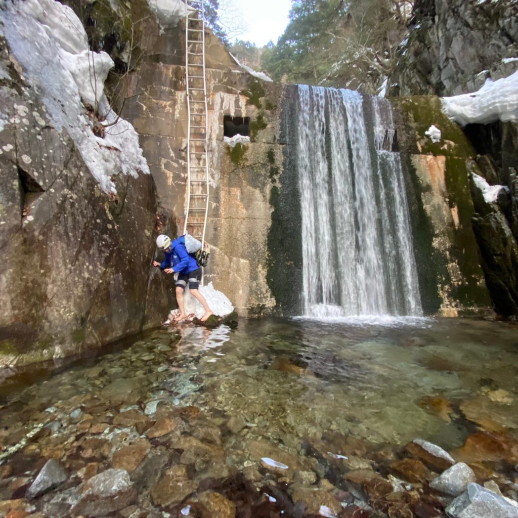 唐沢に入って30分程で噂の梯子に到着。例年は飛び石で梯子まで行けるのかな、今回は目覚めの渡渉でした。膝下と聞いていたのにがっつり膝上でもう絶叫。膝下長すぎだろ。