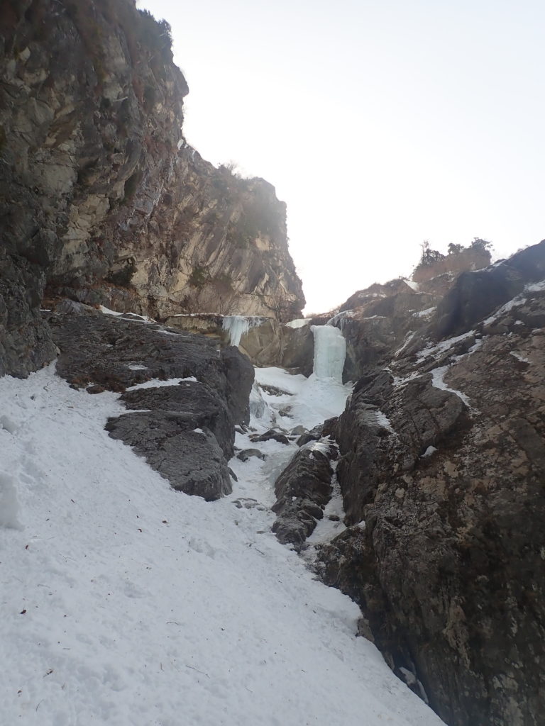 シーズン初めに教えてもらったこのルート。昨シーズンまではほとんどアイスをやったことがなかったけれど、このアルパインアイスに惹かれ、今シーズンはアイスを頑張ってみました。結構行ったつもりだったけど、数えてみれば4回くらいか(笑)。友人を誘い、満を持しての?チャレンジです。