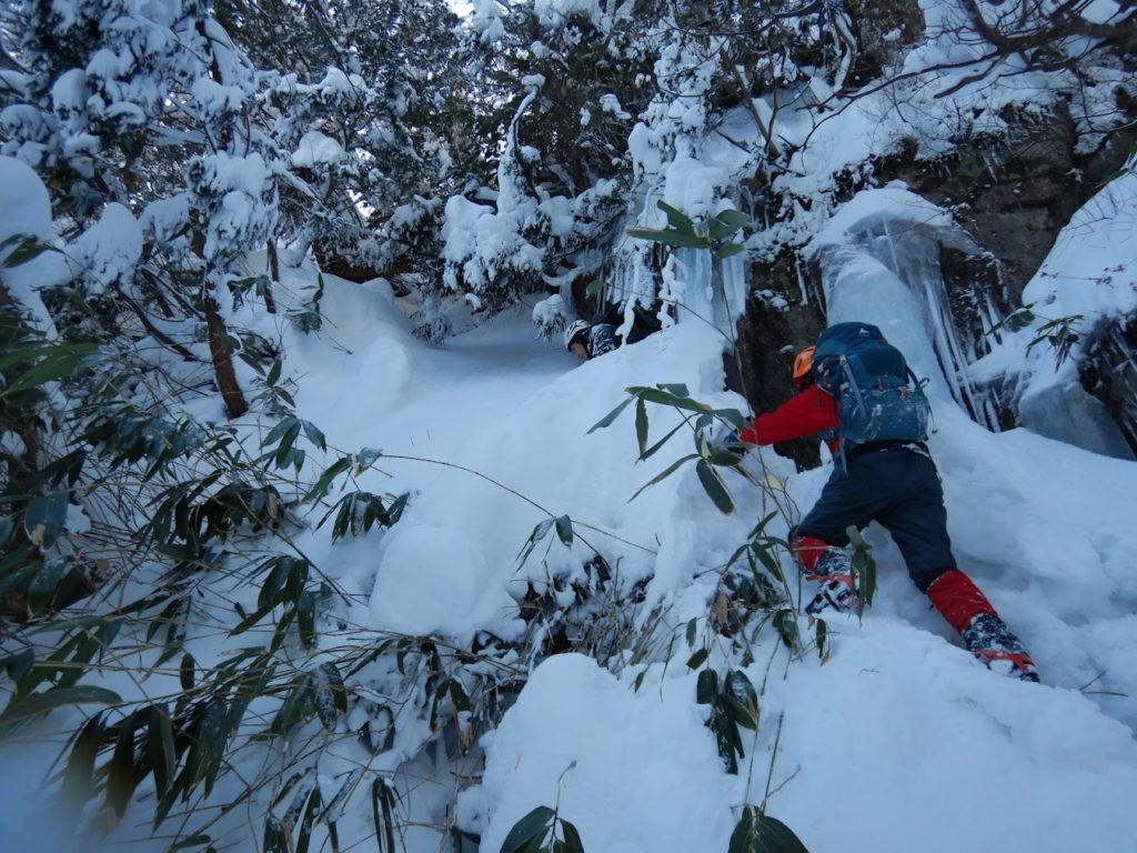 自分は冬の中尾根は3回目だがアイゼンとバイルの登攀は難しく気合いが入る。