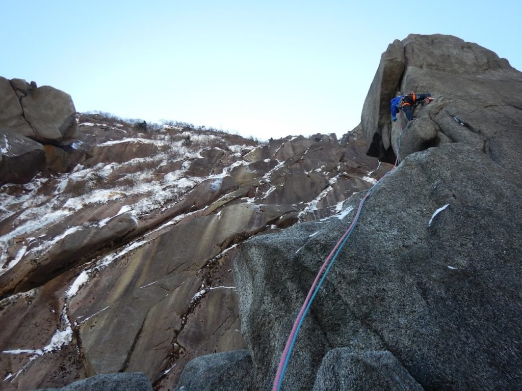 中尾根p3の2p目は過去に何度も登っているので、左にあるツルムクラック10aを登ったが