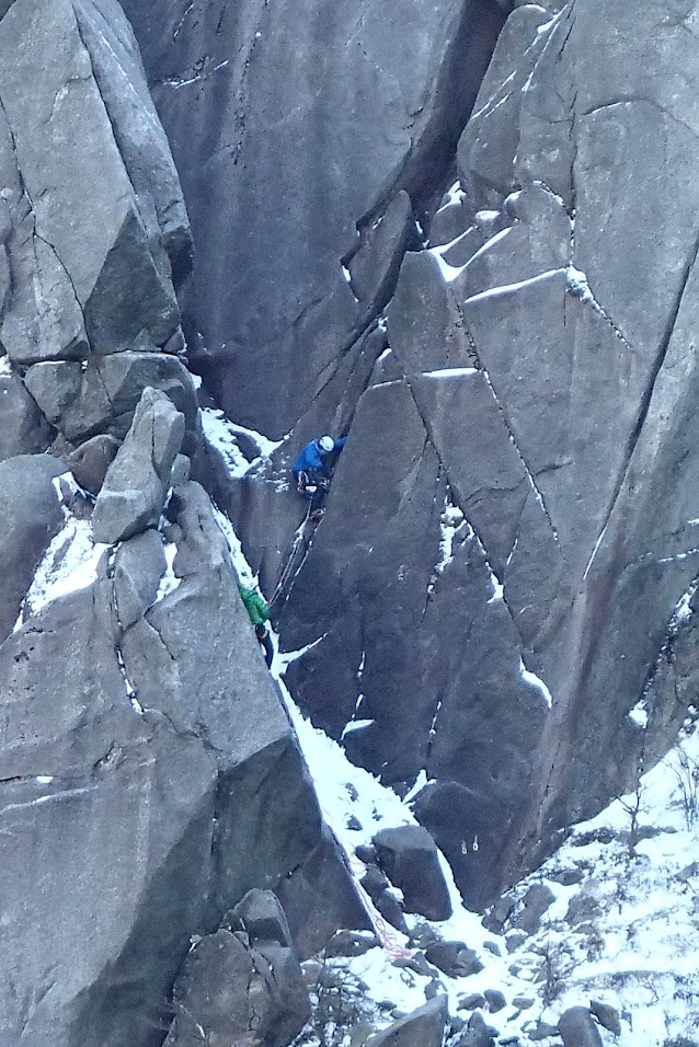 ここは超絶難しかった。終了点からp2への懸垂地点までのアイゼン手袋のマントルも超絶怖かった。