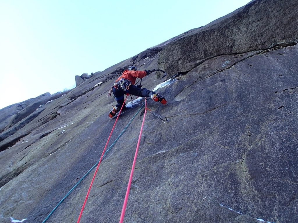 細かいホールドにアイゼンで立ちこみバイルのフッキングがバランシーだ。