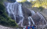 難しい所はなく快適に遡行する。1名なんでもない所で豪快に水にダイブして胸まで浸かって靴が悪いと言い訳してました。あっという間に大杉沢右俣の見どころの六方ノ滝へ