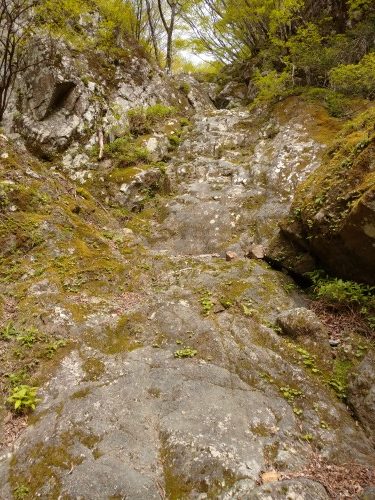 左俣を進むとしだいに水は涸れ涸滝12mをフリーで登る。
