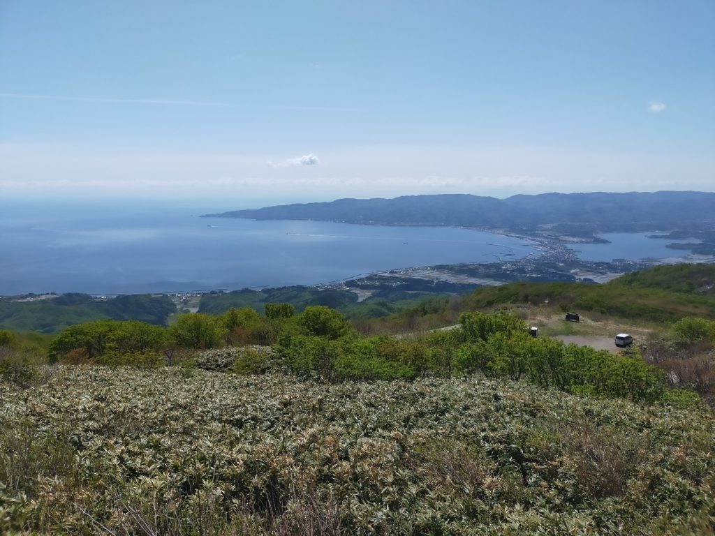 ようやく山頂着。とにかく展望が素晴らしい、標高こそ1172mではあるが本州の山々が、弥彦山をはじめ、飯豊方面、守門岳がかすかに見えた。