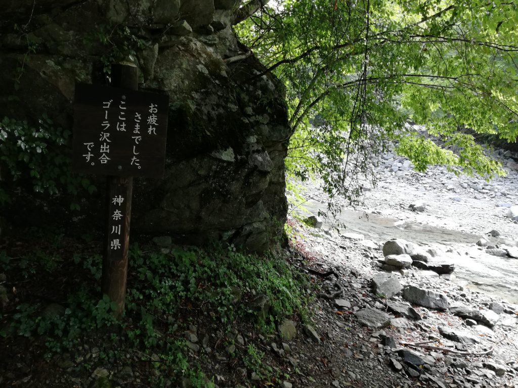 暑い中、お疲れ様でしたゴーラ沢出合です。すでに沢でひと泳ぎしたくらい汗で服は濡れている。