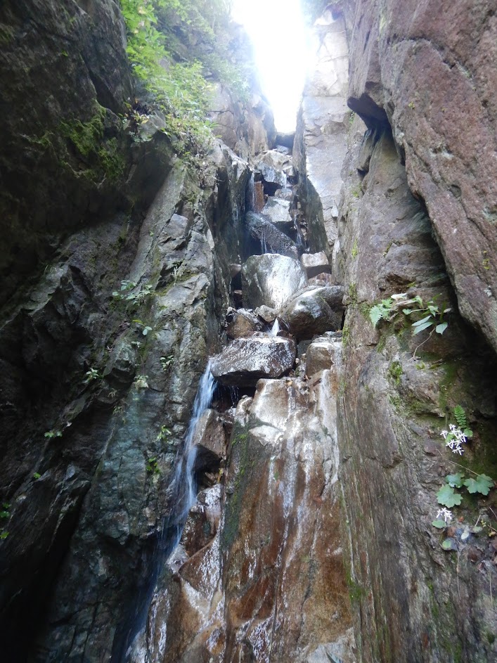 無名沢は高くても10m程で他10m未満の登れる滝が間隔があまり空くことなく30~40個くらい続き、登れない滝は3つ4つくらいで、ヌメりと脆い所が若干あるが、快適遡行の沢だ。