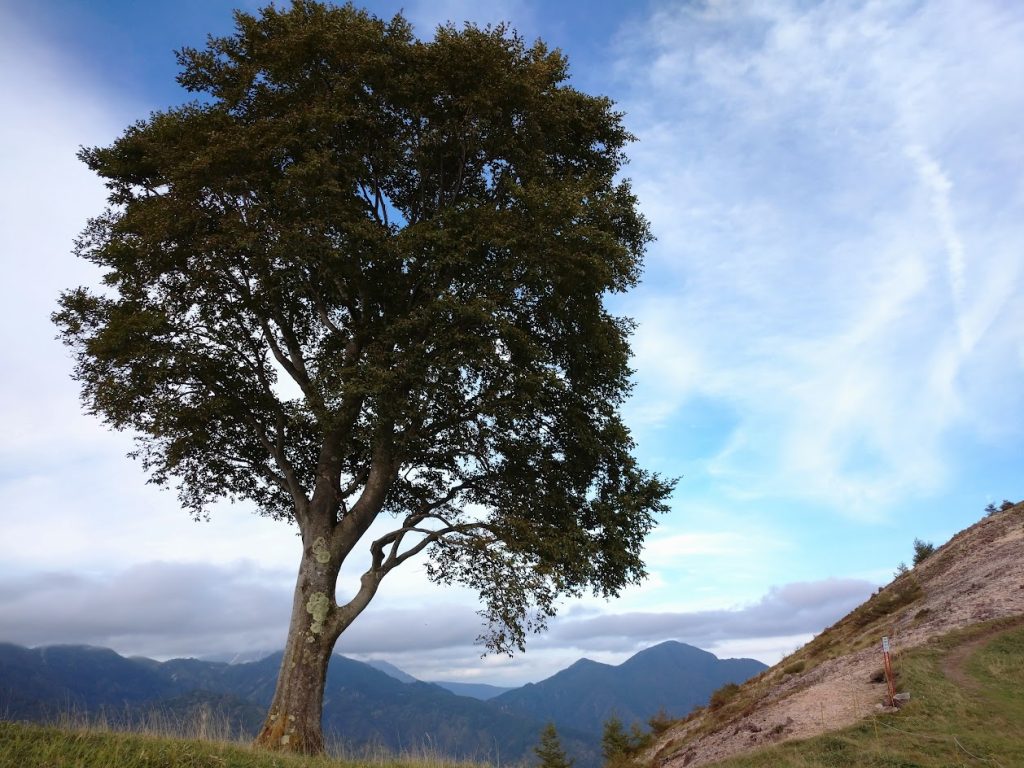稜線上にポツンと1本だけある孤高のブナの木