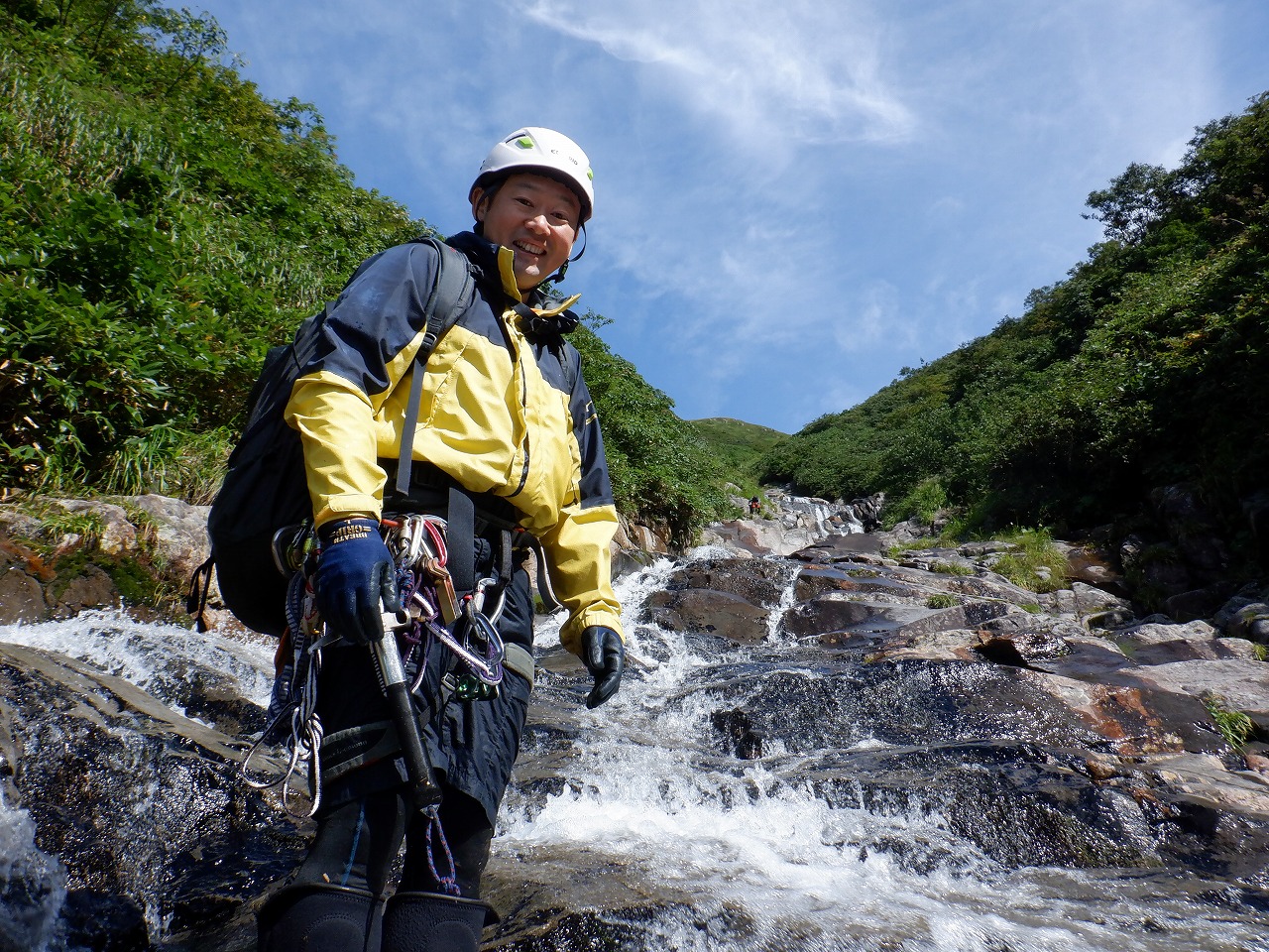 上部のナメは本当にきれいなところだし、晴れて白い岩と青い空のコントラストが美しかった。
