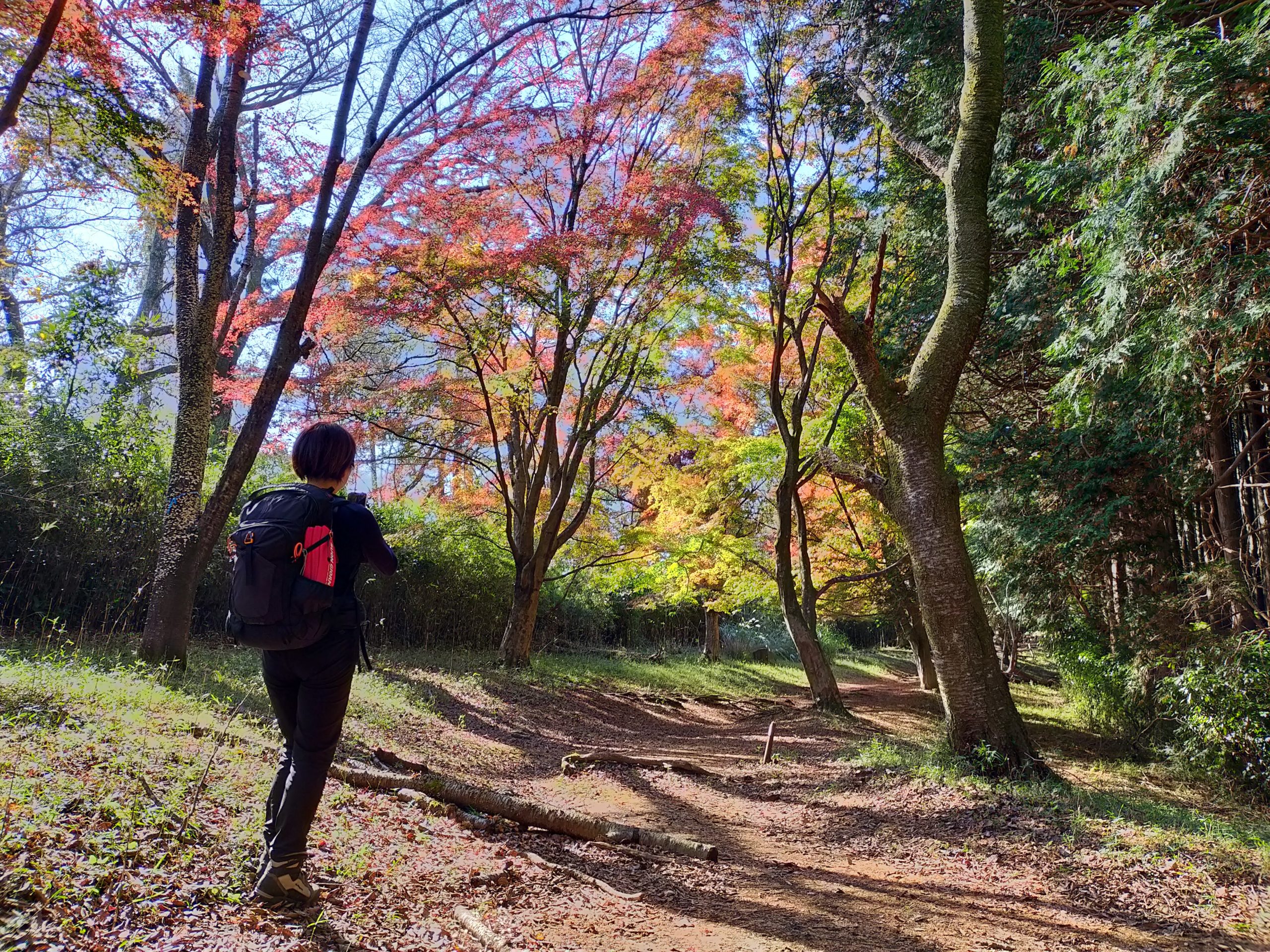 ゆっくり歩いて40分もすると始まる紅葉街道始まる。