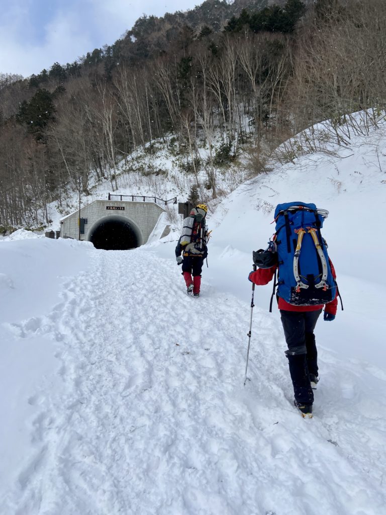 釜トンネル前の冬山登山相談所へ登山届を提出。相談所の方々の話によると、霞沢岳西尾根には既に4~5パーティほど入山しているとのこと。