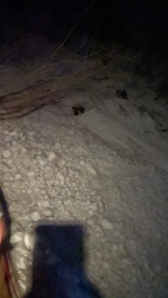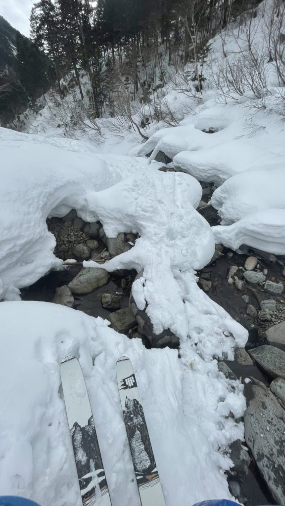 年末にスキー無しで下見もしたから準備万端?と思ったら槍平小屋までがまぁ過酷な事 年末には無かった雪崩のデブリ地獄 雪玉がゴロゴロしていてオマケに硬い トラバースには本当神経を使った。