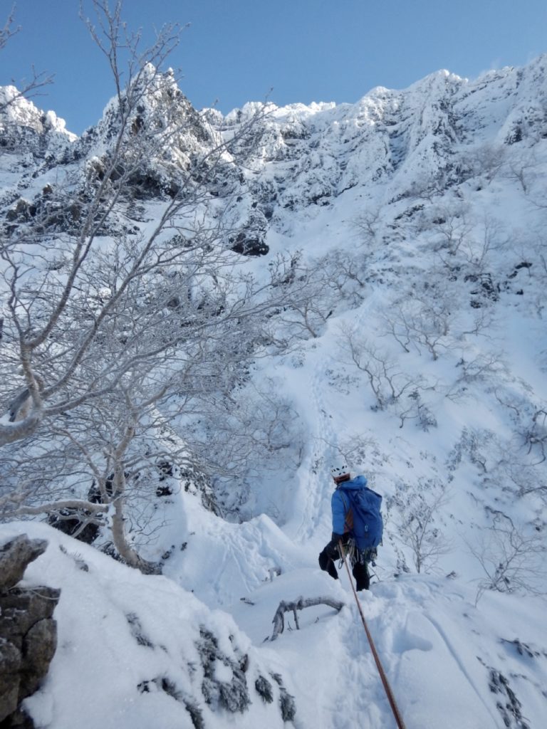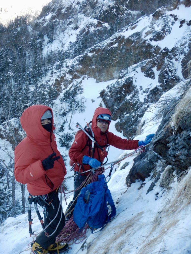 2P目?終了後で先行パーティに追いついた為、先を譲って頂く。アックスとアイゼンで手足が冷え冷えなので、待たずに済むのはありがたいっ!