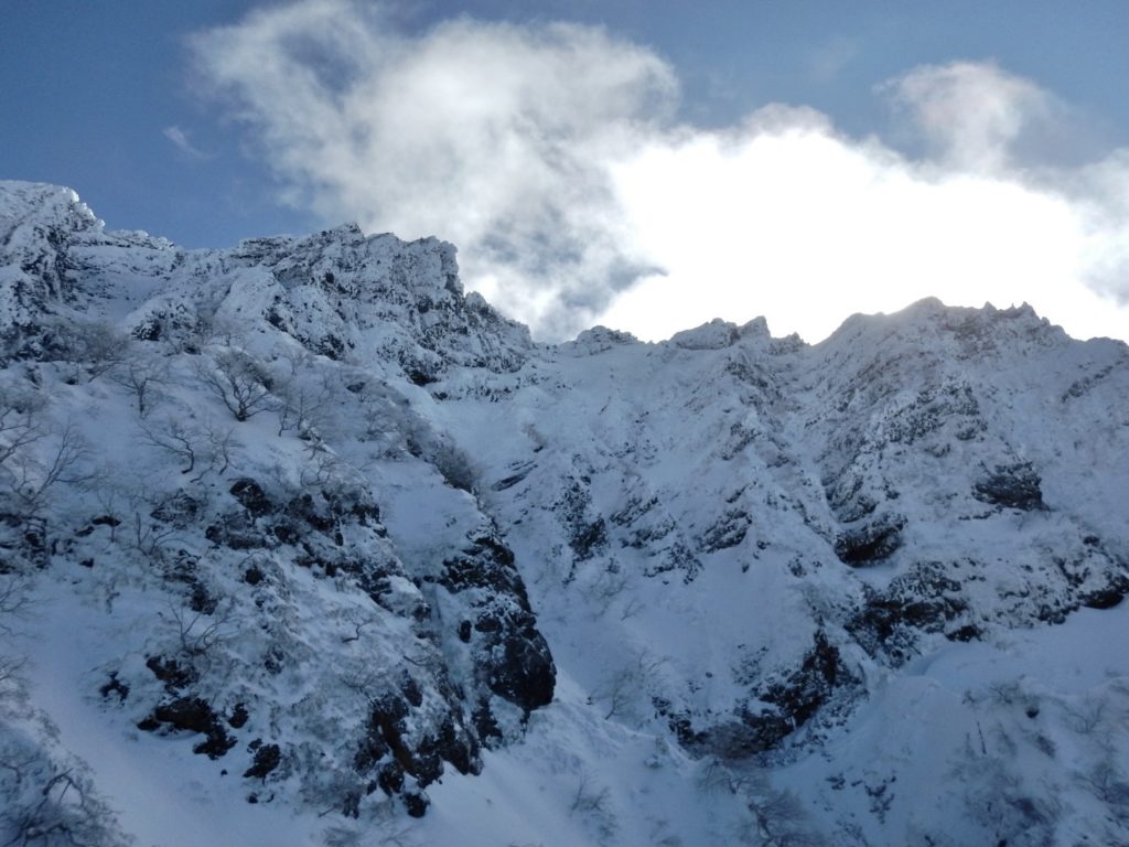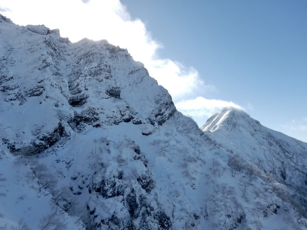 雪稜歩きになり、やっと写真撮れる余裕。周囲の岩峰がかっこよすぎるッ!