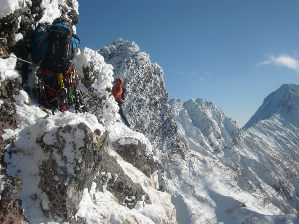 大同心稜の急登を1時間ほどのアルバイトで駆け上がる。黒々とした大同心の地肌を目にした際には、その季節感の乏しさにいささか辟易したが、氷雪の白い衣を纏った地蔵には、今の自分の実力では太刀打ちできなかったはずだと後に登攀を顧みれば、やはり幸運だったというべきか。