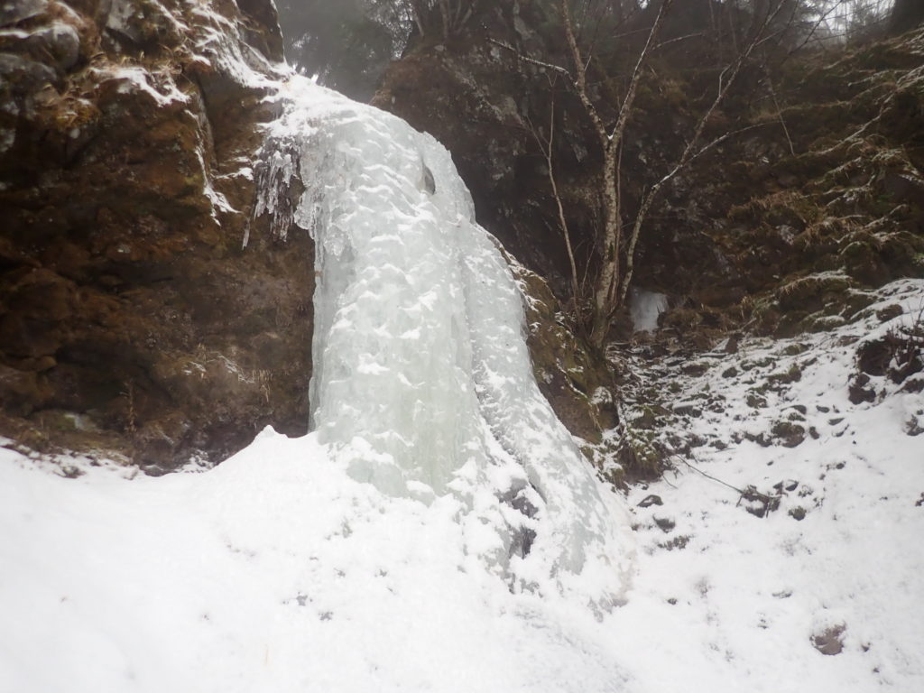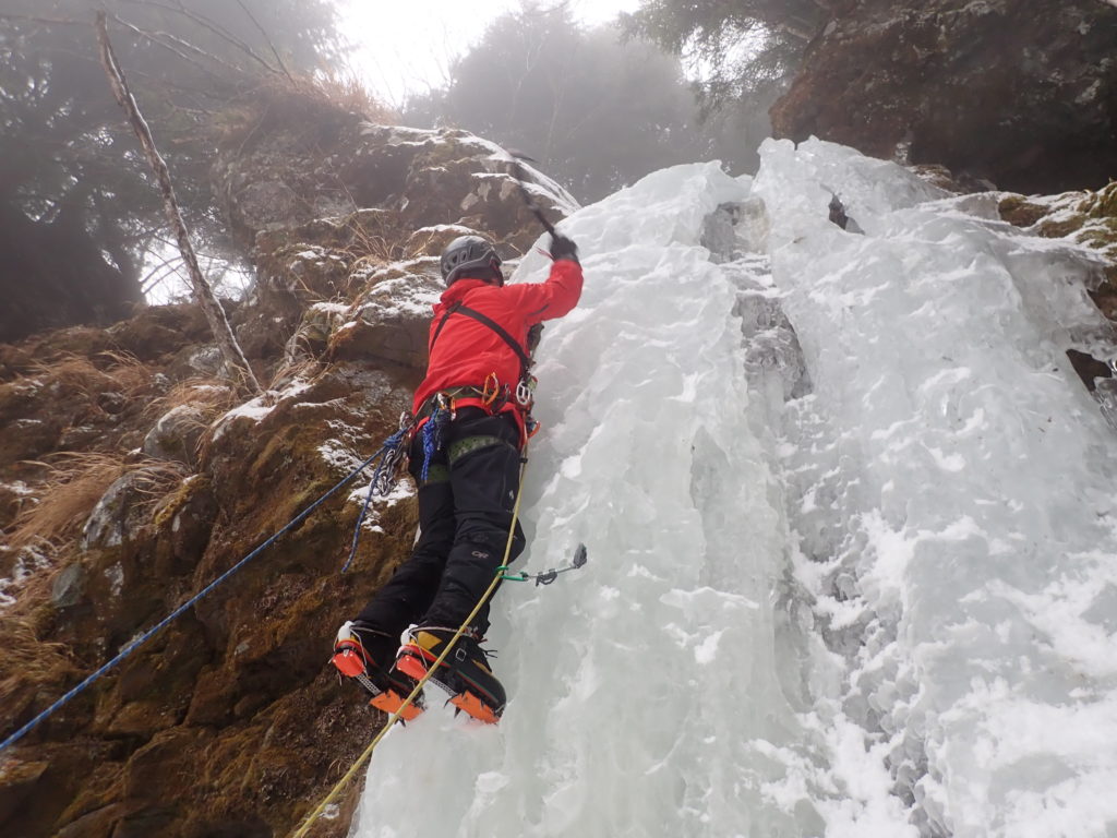 12/31は曇りのち雨。夜は雪が降っていた為、一晩で景色が変わっていた。雪不足の八ヶ岳もようやく雪化粧。この日は近場の武藤返しの滝でアイス訓練をすることに。