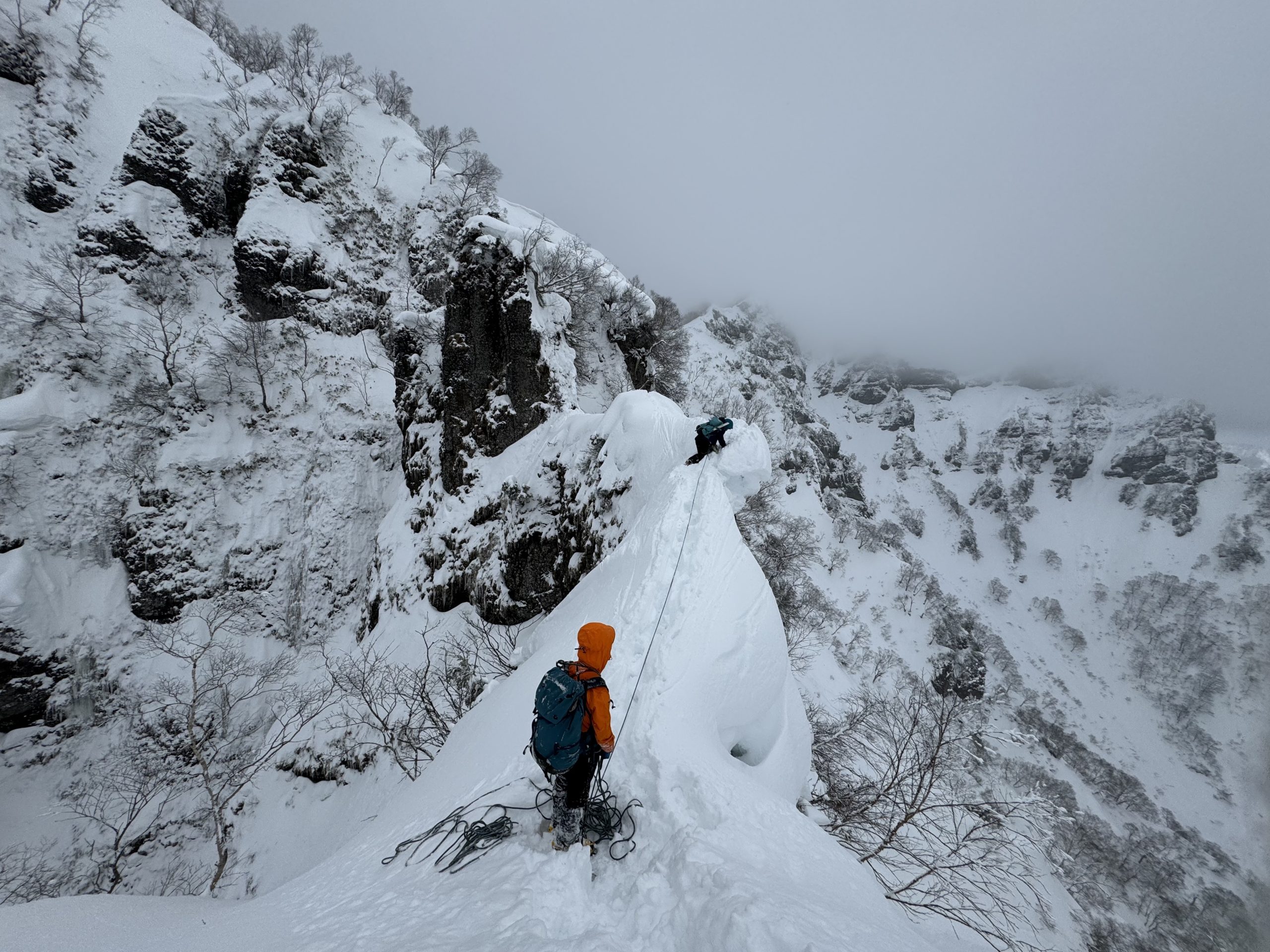 蟻の戸渡り。写真に残していないのを後悔するぐらい、真っ白なナイフリッジだった。鈴木くんは喜んで犬のように真っ白な雪に飛び込んでいました。私は普通に怖かったので蟻のように四つん這いで歩きました!