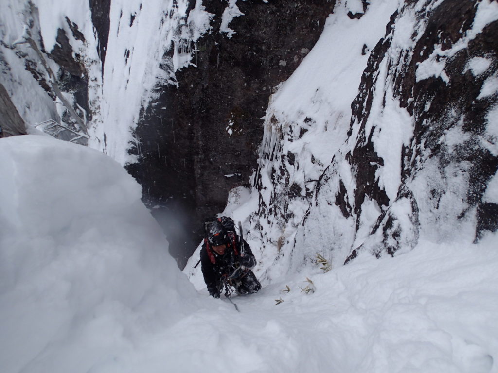 ここは1ルンゼ左の本流と共通か。今回は右のクラックからルンゼ状を詰める。立木でビレイ。意外にも氷が発達しており、スクリューを置いて来たことを後悔した。