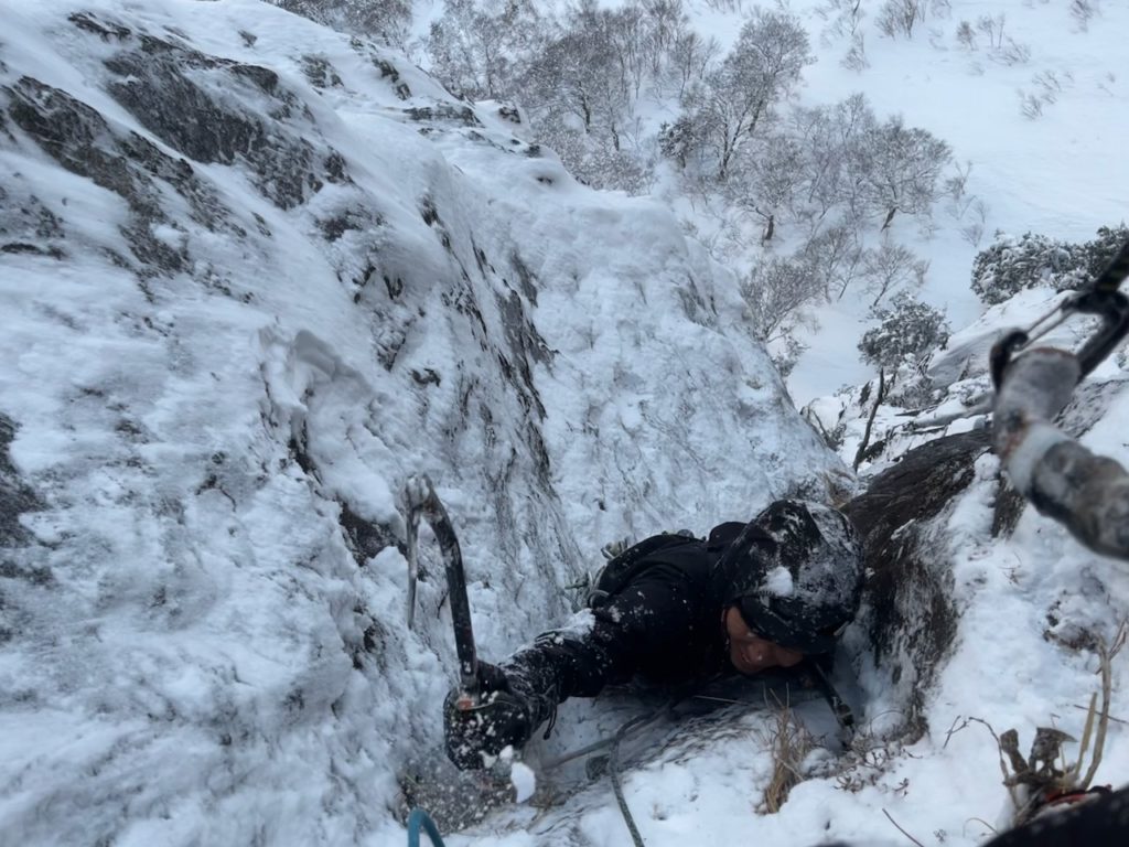 今回は二日とも着雪が多く、登攀中も降雪がずっと続いてたり中途半端に氷が発達していたりと難しく、恵まれたコンディションでいつも以上に楽しめました。