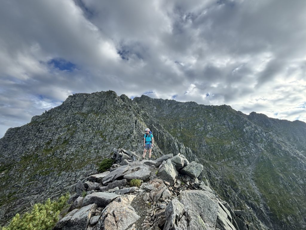 先に北穂まで行って、ショートルート登っててもいいですよと伝えて、メンズ4人と女子ふたりに別れて歩き始めた。