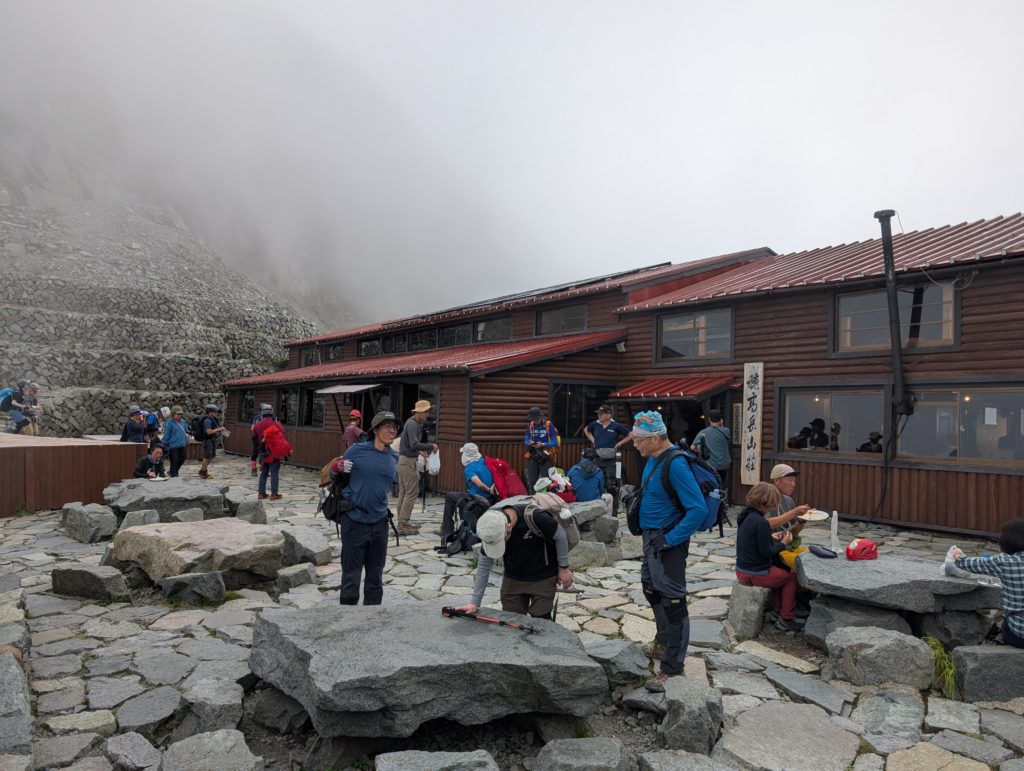 山荘に着くとマサヨンの体調が悪く、ここまでかもとのことだったので、わたしも一緒に残ることにした。奥穂高岳のピーク踏んでくると言っていた大善さんも流石の雨で山荘で待機していた。しばらく空の様子を伺いながら、明日の動きについて話し合った。