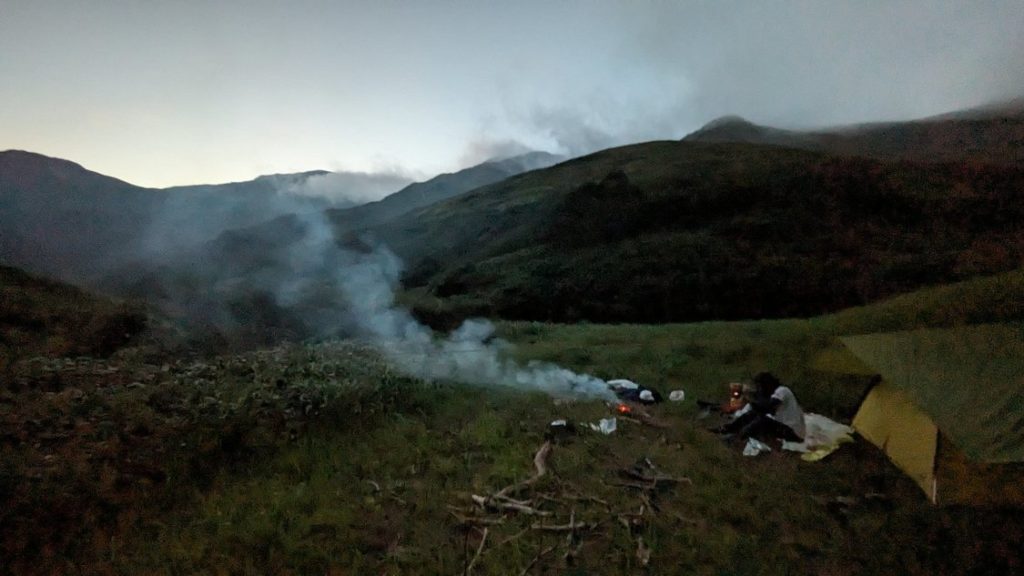 二〇一二が8年前に泊まったというテン場まで下降し、美味しいとこどり。最高だ、、、!!