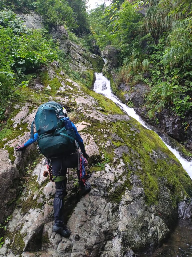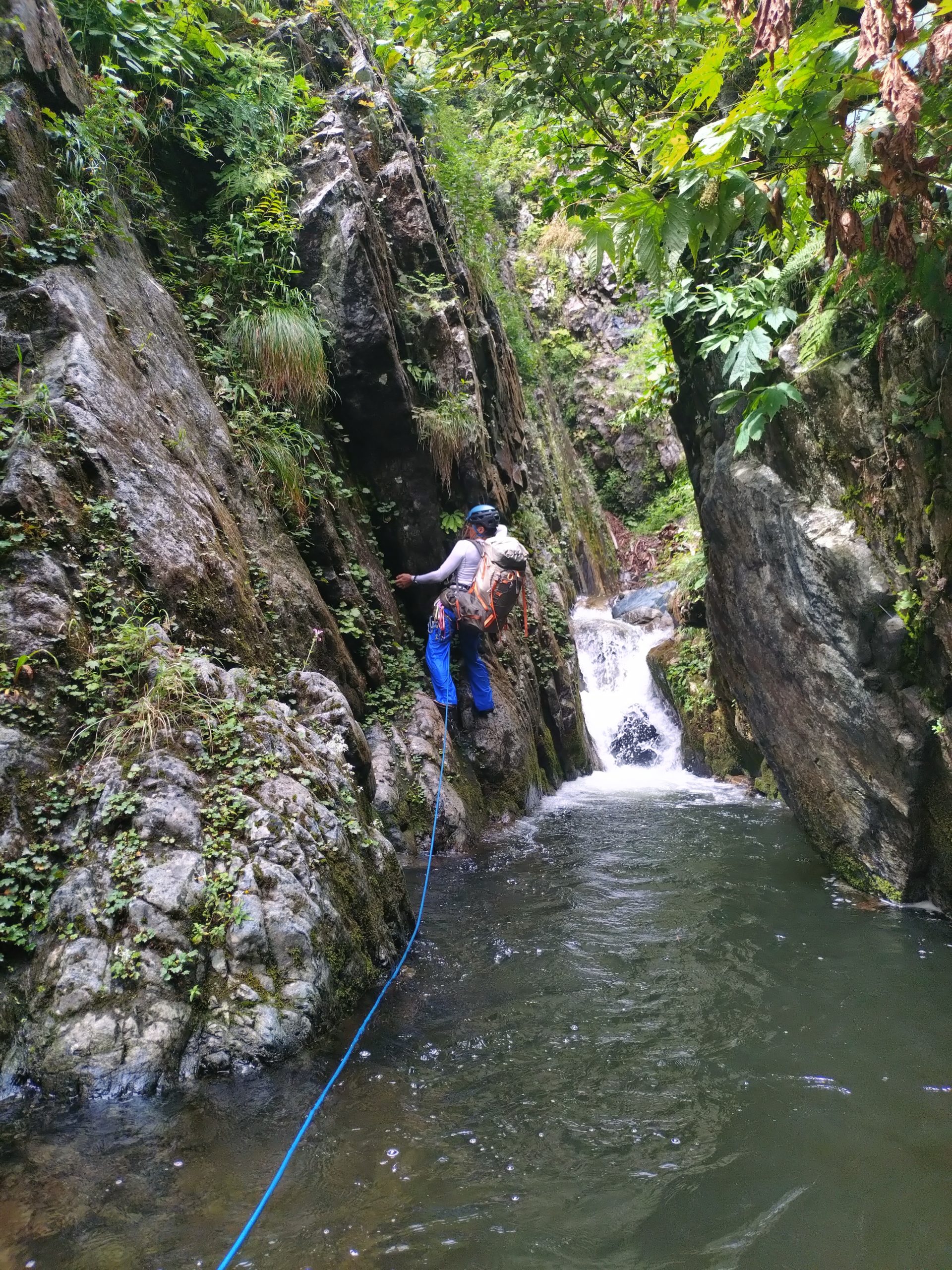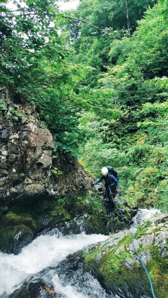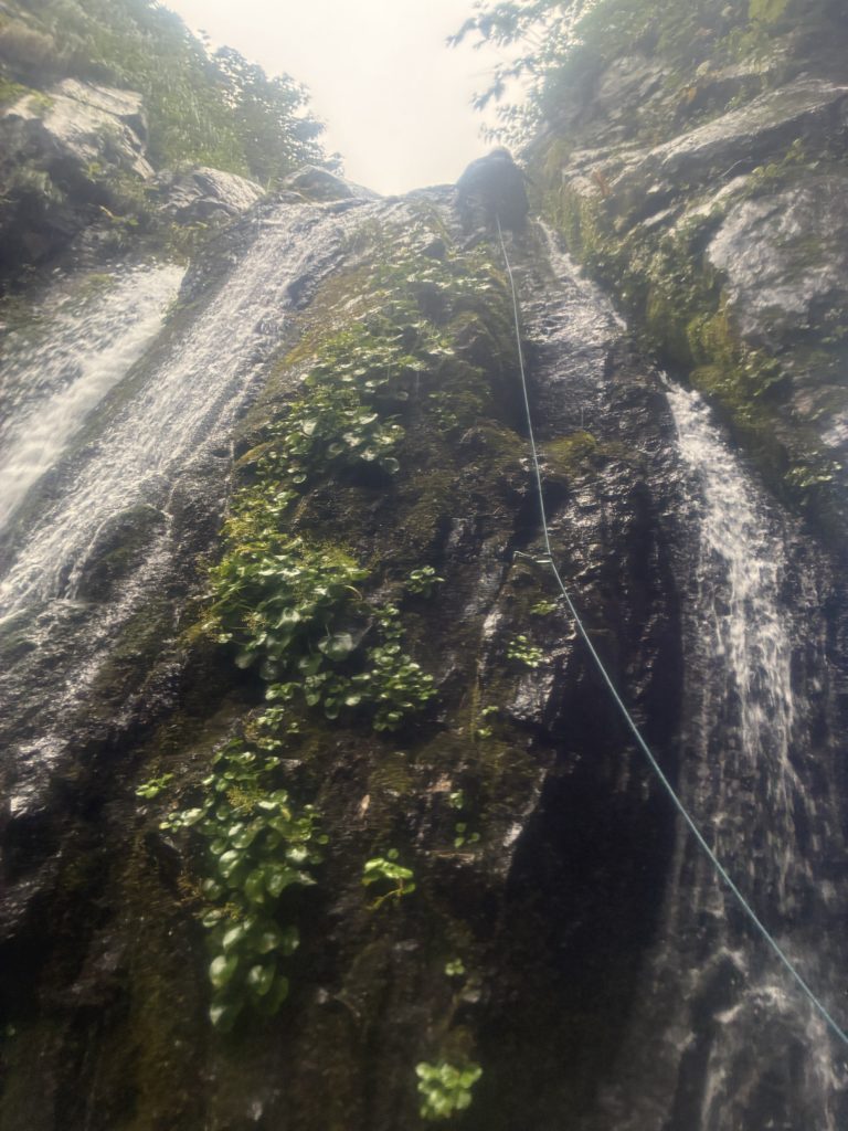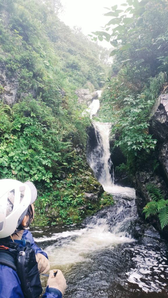 基本的には滝をフリーで登ったが、高さがある滝はロープを出した。