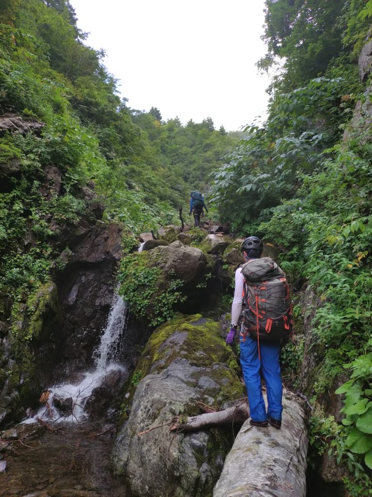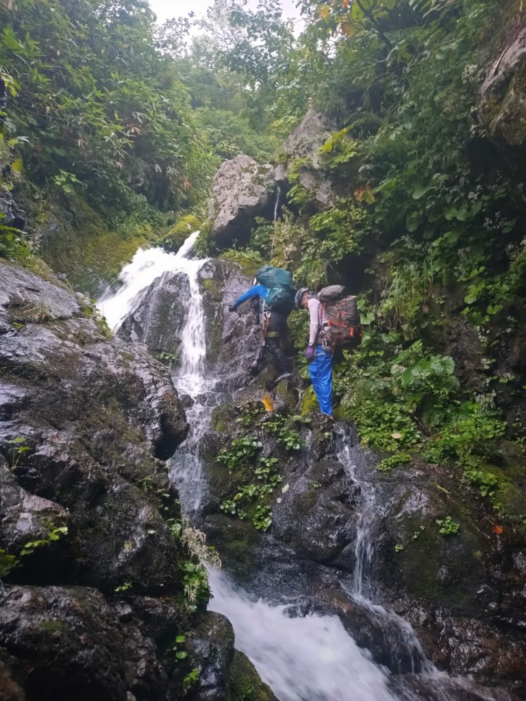 今日はなんとか天気がもつうちに山頂に行きたい!とつかさん。でもそんな願いむなしく、途中から雨降る中の遡行となった。
