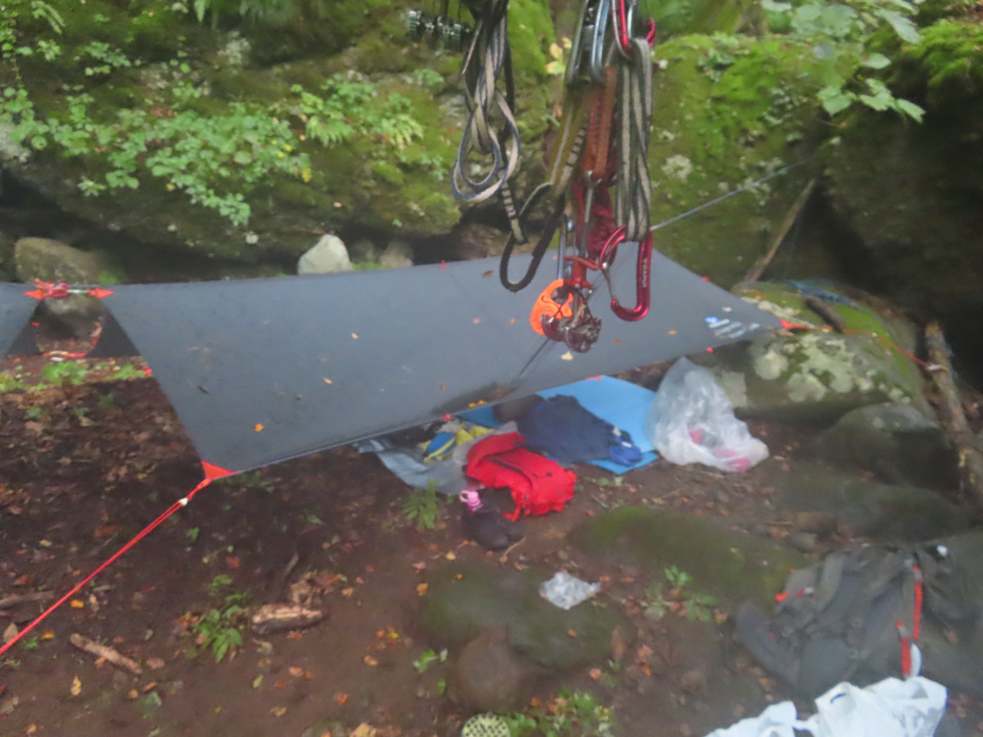 • 行程:9:50 入渓〜10:05 ゴルジュ入口〜12:50 6m滝〜 15:00 二段の滝〜 16:00 幕営地 7:00 〜 7:50 ナメ入口〜 8:15 カケス沢右俣〜 10:45 北石橋 11:00 〜 13:25 糸岳13:40 〜 14:20 二口峠(下山)