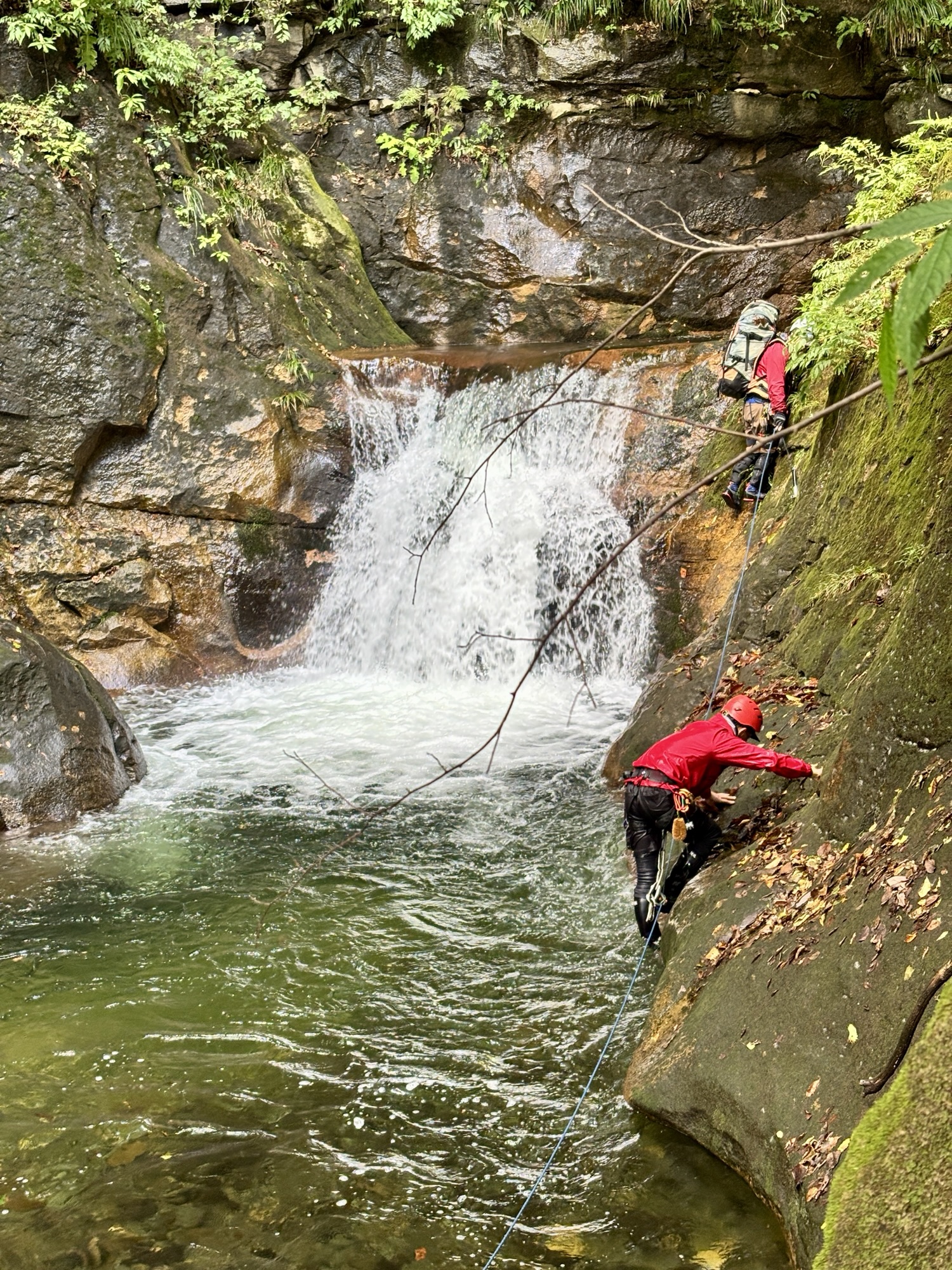 滝が現れると相原さんがサクッとフリーで登り、ロープ準備してくれる。軽やかにそして素早く登る姿にみんな見入ってしまい、全然写真撮ってなかった…笑