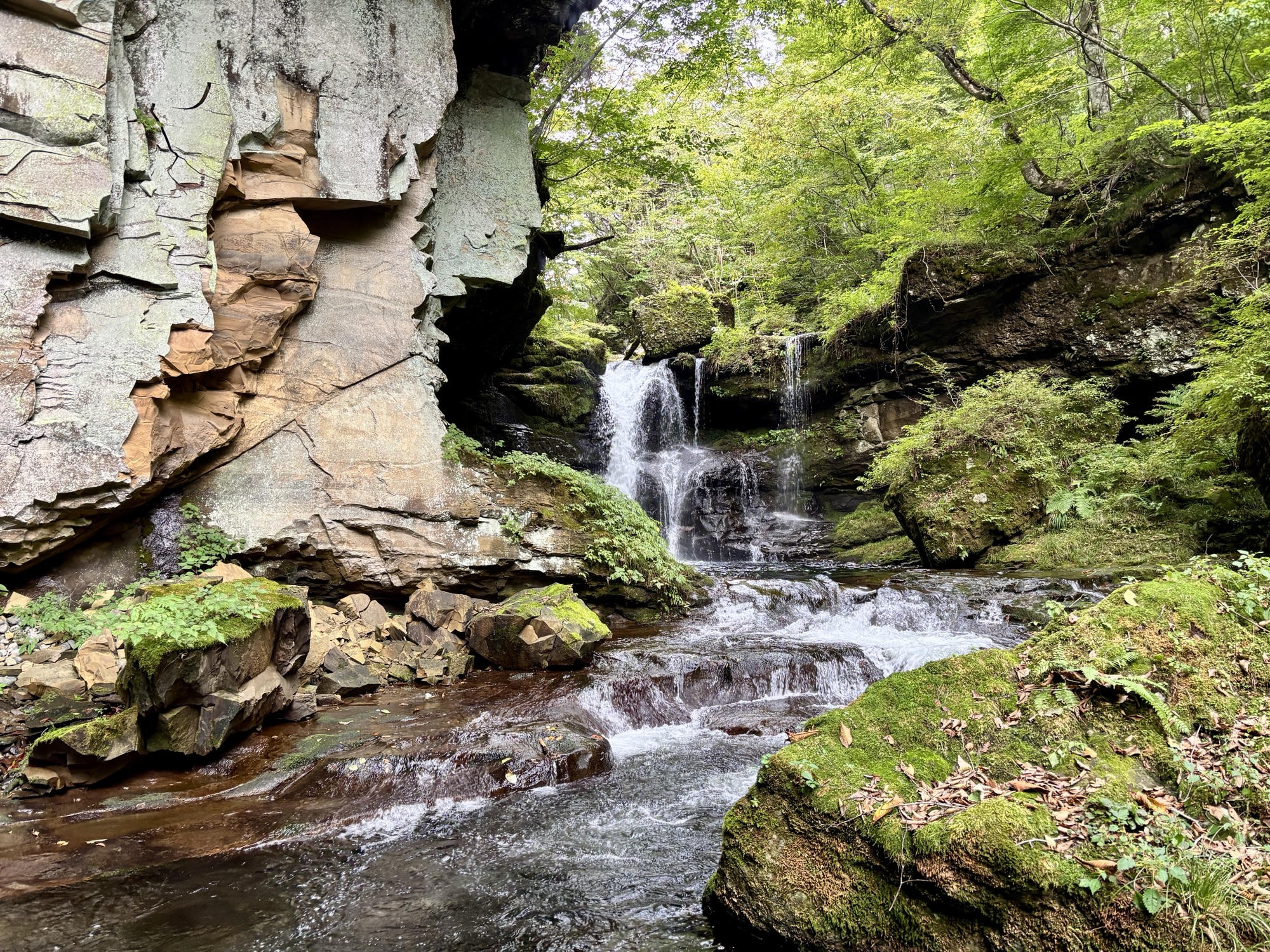 面倒な滝を超えた先には北石橋(きたしゃっきょう)と呼ばれる自然にできた石橋とその中をサラサラと流れる滝が現れる。想像をはるかに超えるスケールの石橋と滝は見る価値大の壮大さと美しさでした。