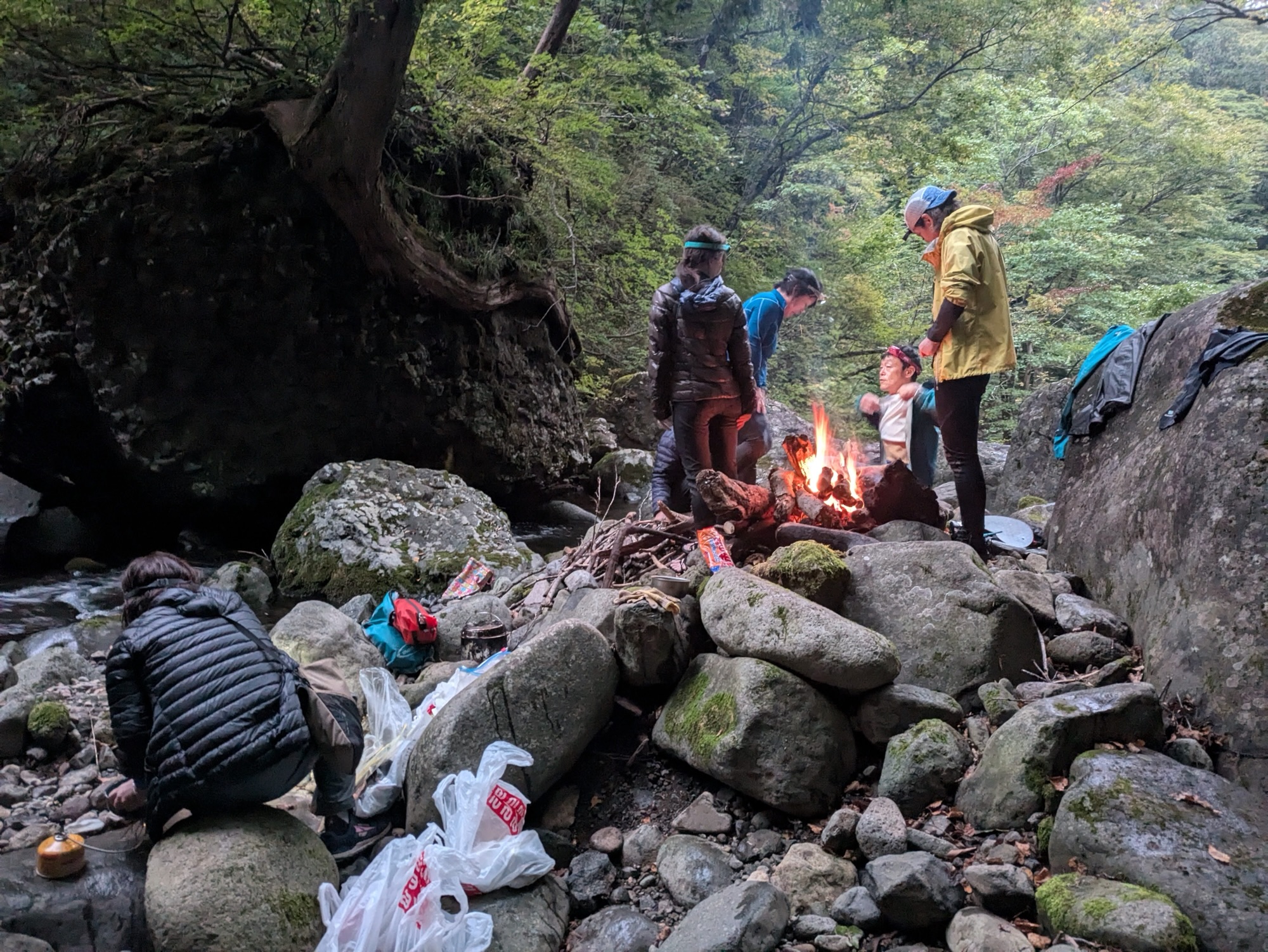 焚火を囲めば、ご飯も会話も弾む。 えび餃子が美味しすぎて食べることに夢中になり、これまた誰ひとり写真撮ってなかった…笑