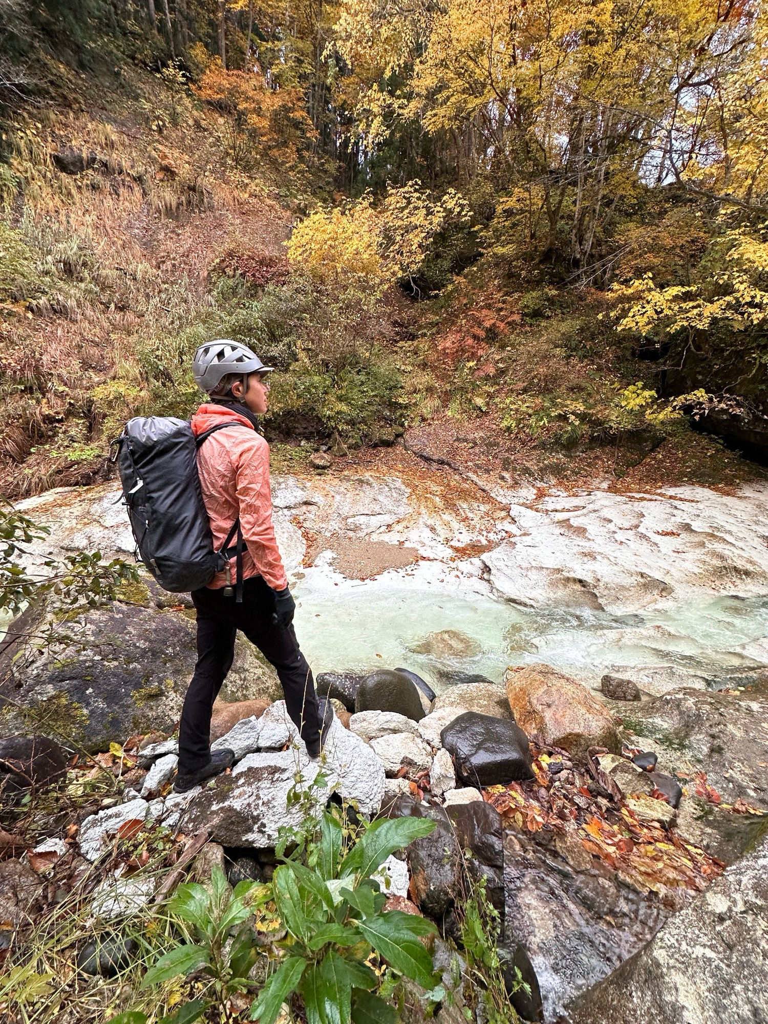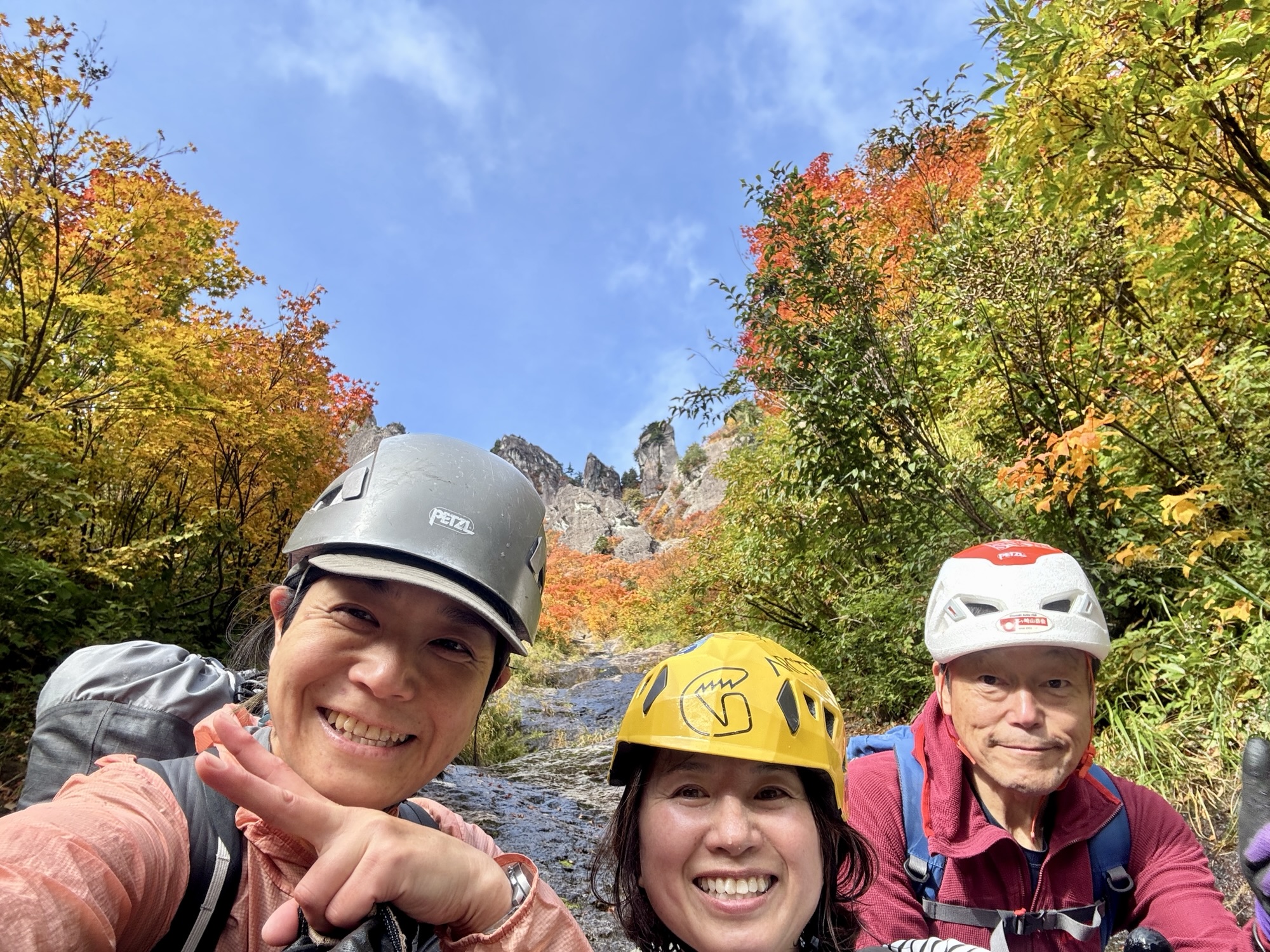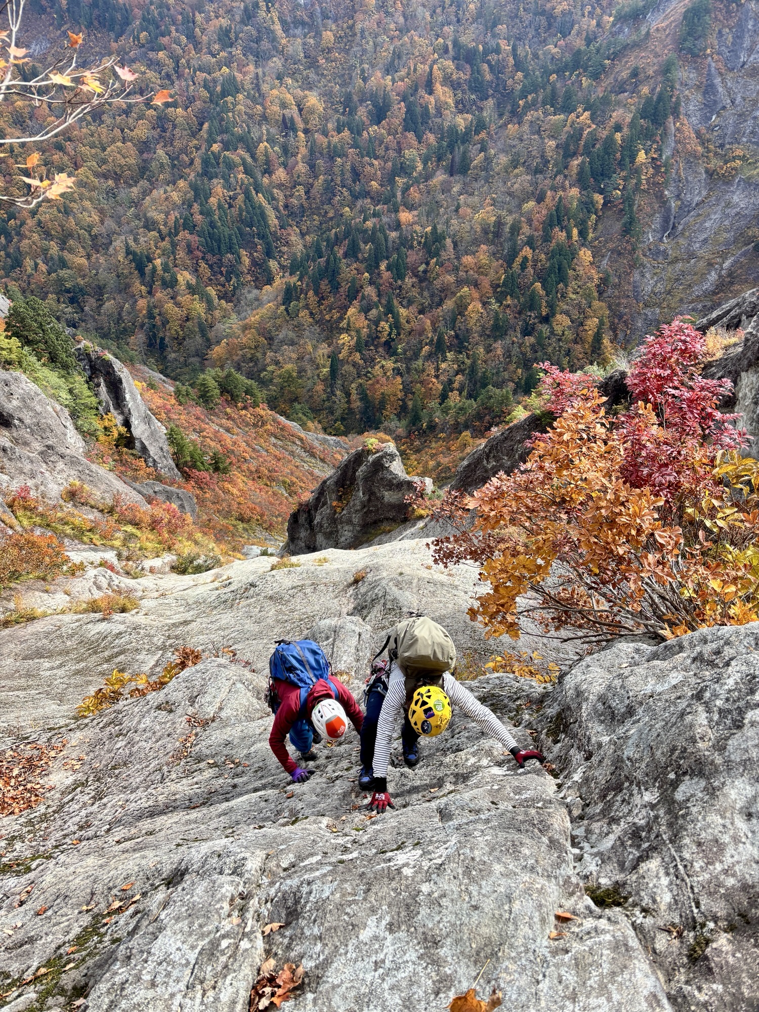 この日は全員、ラバー沢靴できたのでスラブもフリクションしっかりで、スタスタ登れるのだが、振り返ってみると、なかなかの高度感、そして一度つまずいたり滑ったらどこまでも落ちていきそうな傾斜に内蔵がキュッとした。