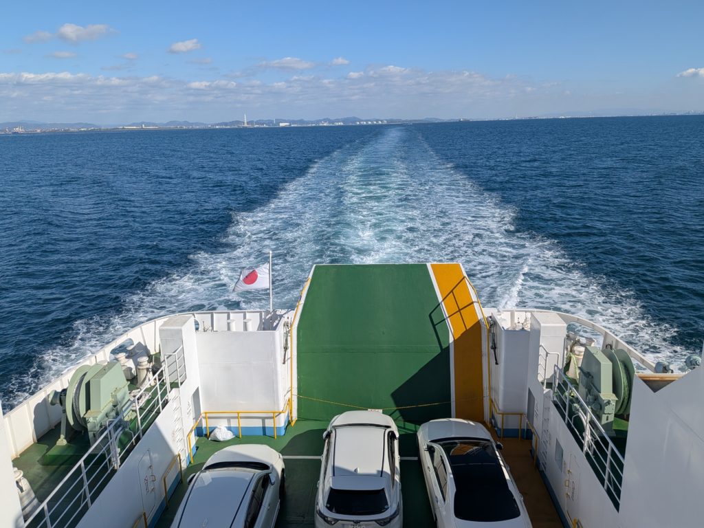 この日は「クライミングはもういいっか」っていう気持ちだったので、大人の休日倶楽部メンバーは寒霞渓(日本三大渓谷美の一つ)の紅葉 → マルキン醤油記念館と小豆島を観光して、帰りのフェリーに乗船するため福田港に戻りました。マルキン醤油記念館で味わえる醤油ソフトクリームはお勧めです!