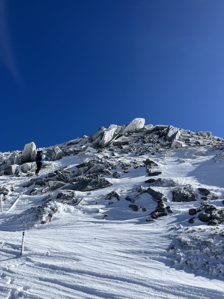 森林限界を越えると晴れたが強風がけたたましい。