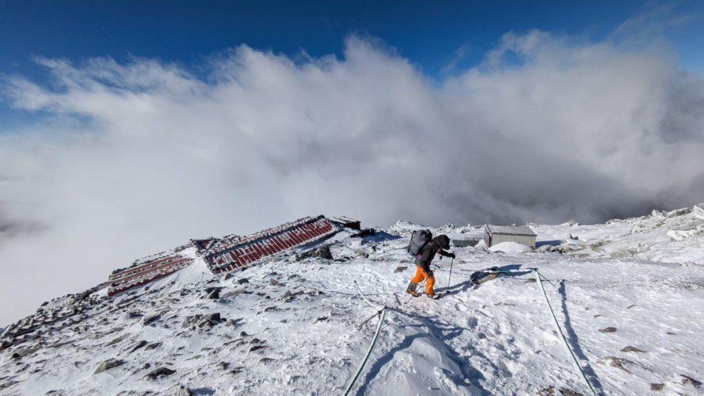 山頂に着き、さくっと写真を撮って時間切れなのでそのまま折り返す。風強すぎて休めやしない。