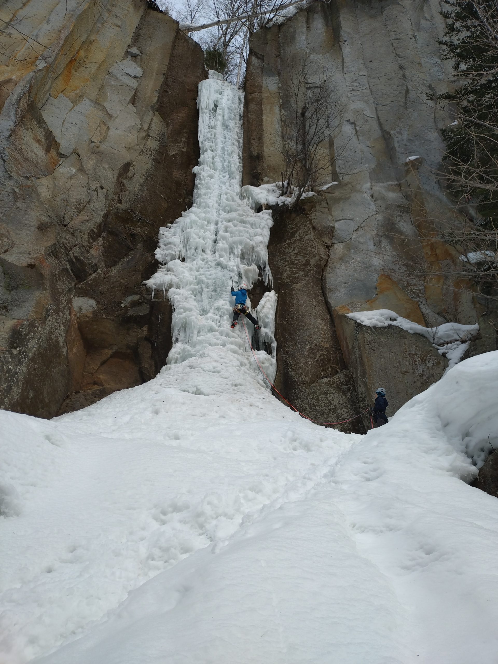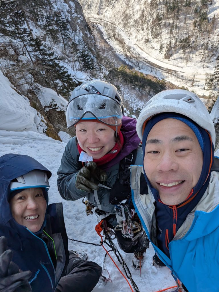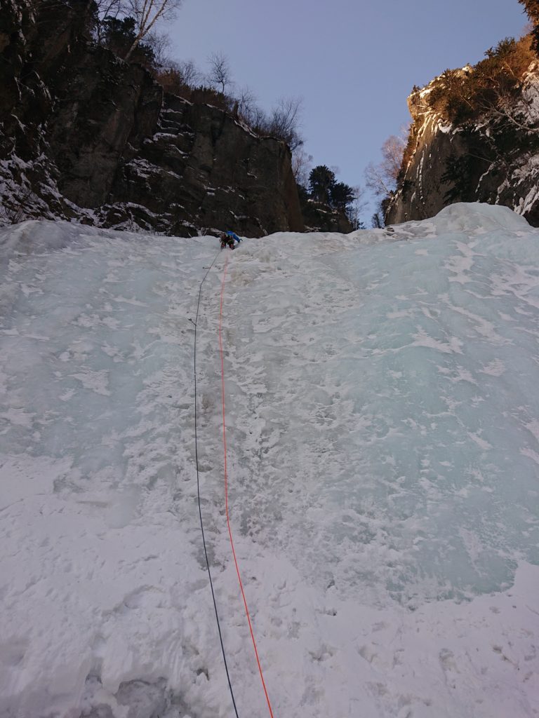 小林さんリードで、パラグーフォール、尾滝、NAKA滝を順に登り、私と冨澤さんはトップロープで遊ばせてもらった。小林さんがさくっとリードで登ってしまうので、半日で3本も滝に取り付けてコスパのいい一日でした。夜は層雲峡の温泉とラーメン♡
